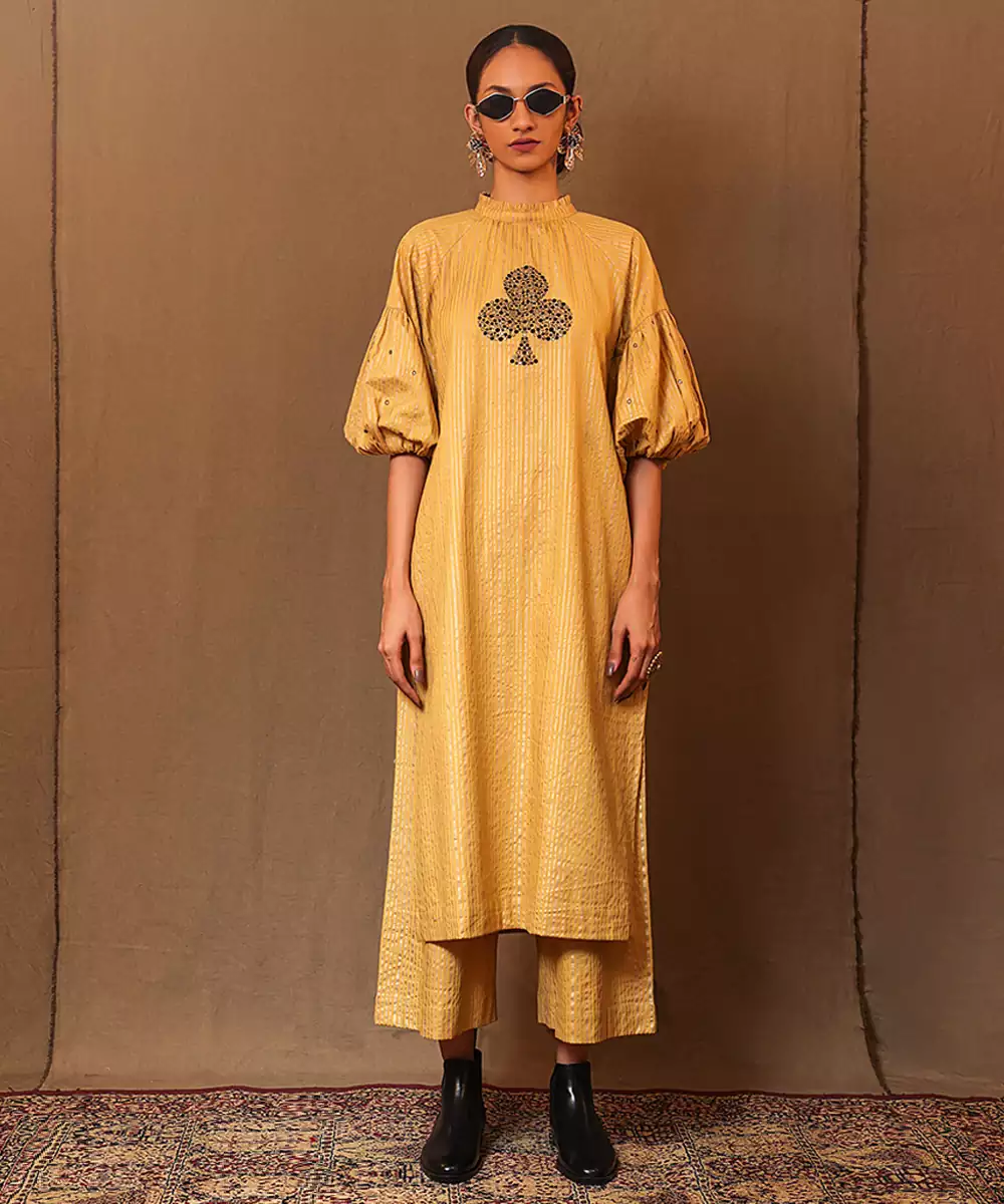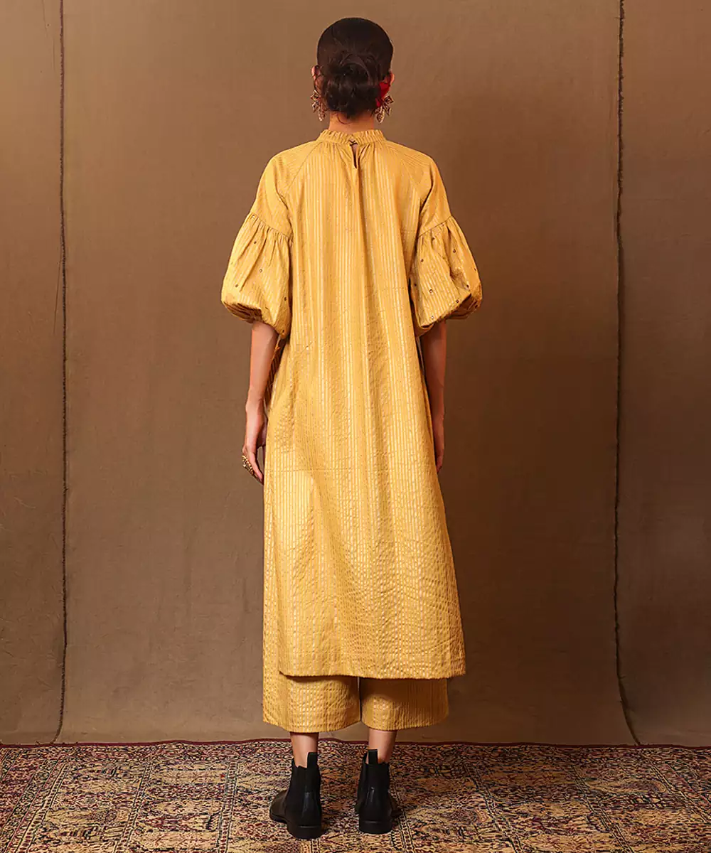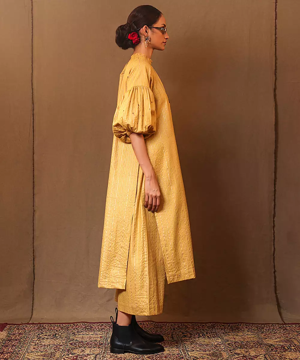 Yellow Printed Cotton Long Kurta