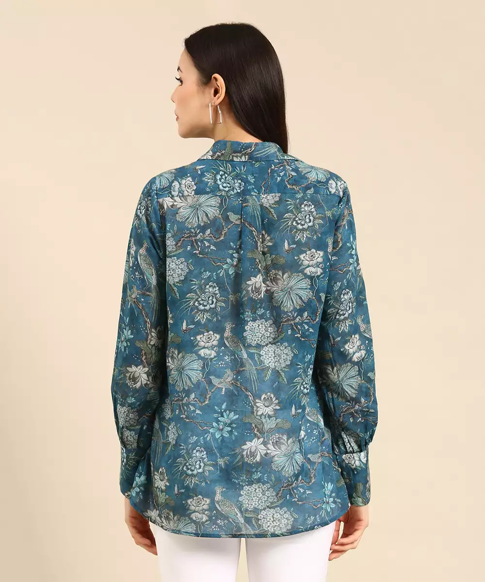 Blue Mul Mul Cotton Printed Shirt