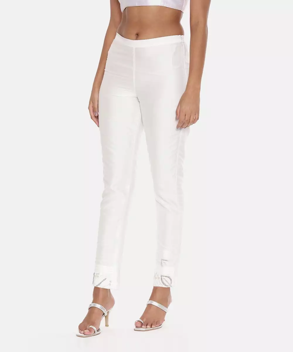 Classic Ivory Silk Cotton Co Ordset With Subtle Hand Embroidery Detail.