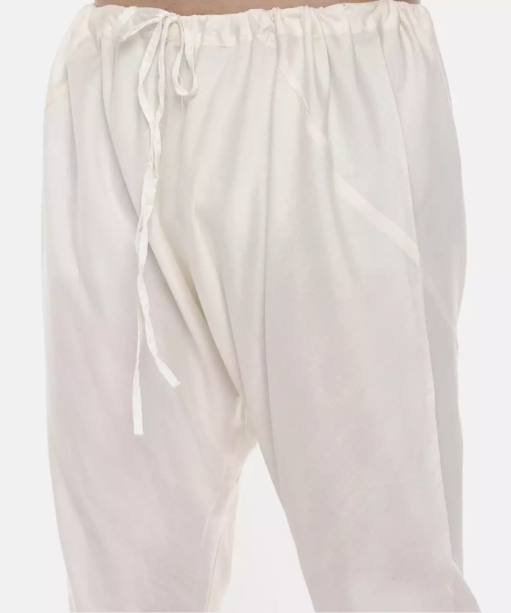 Classic Cut Away Wrap Wround Green Ivory Silk Cotton Kurta With Subtle Hand Embroidery.