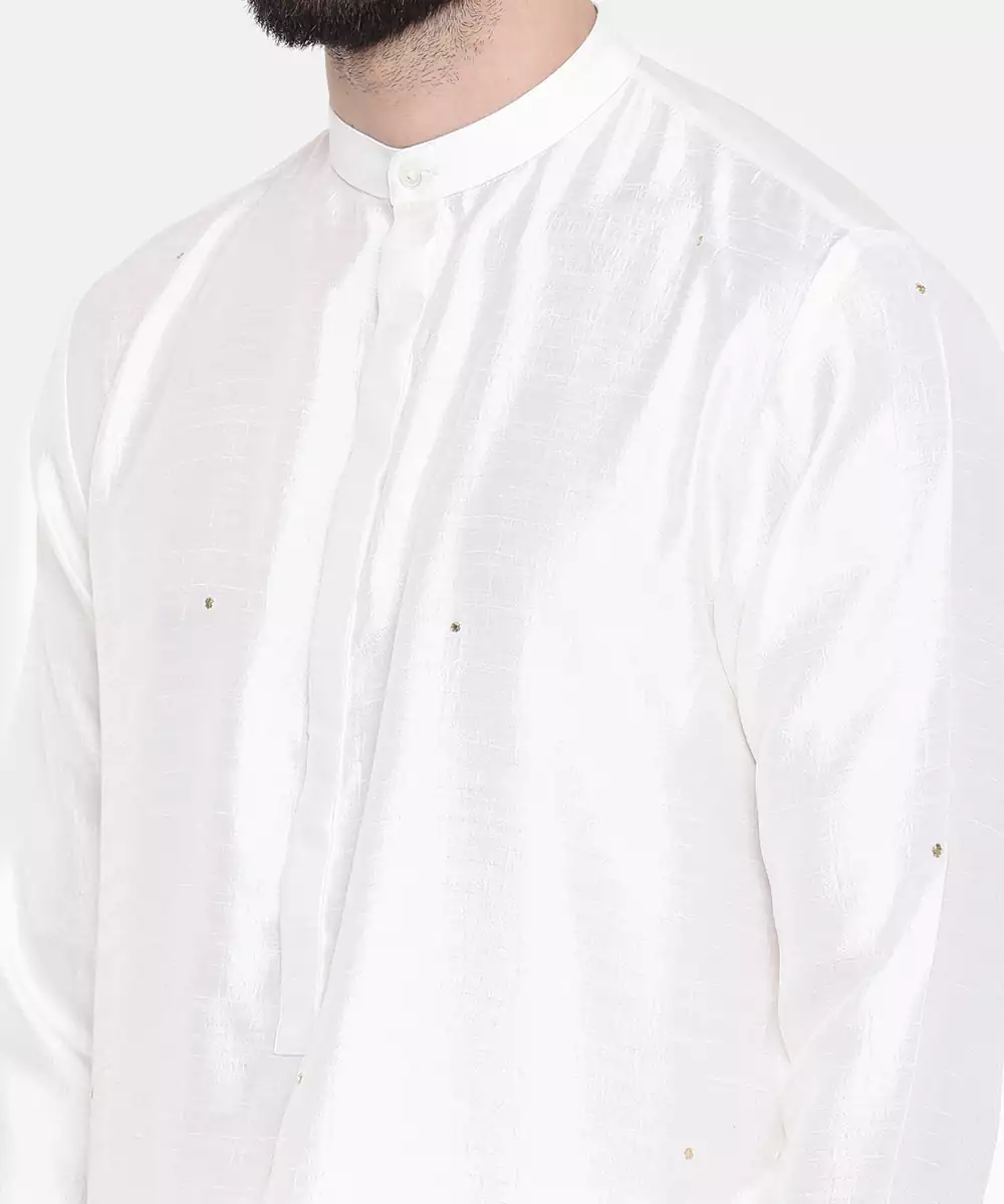 Ivory Silk Slub Kurta With Subtle Mukesh Hand Embroidery Paired With Chudidar.