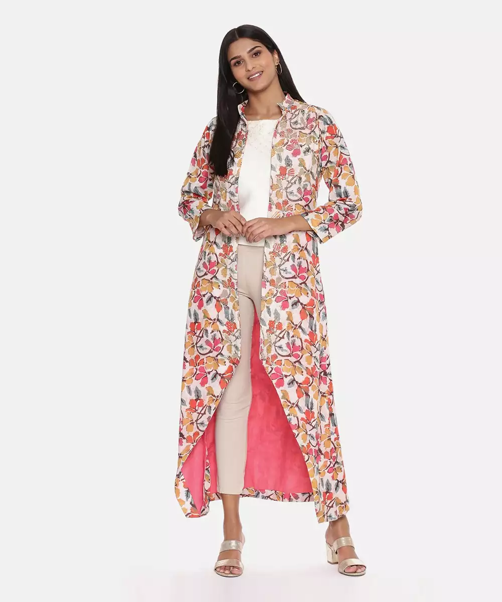 Printed Linen Cotton Over Layer With Subtle Highlight Hand Embroidery. Pair With Denims Or Sleeveless Dress.