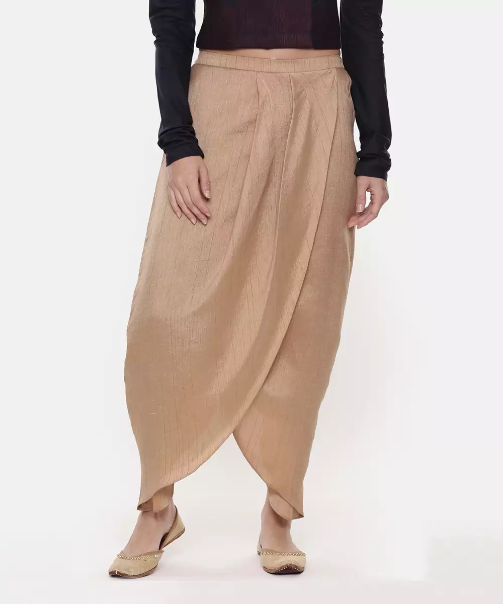 Rust Gold Silk Dhoti Pants Can Be Paired With Stylish Embroidered Long Top Or Even A Saree Blouse.