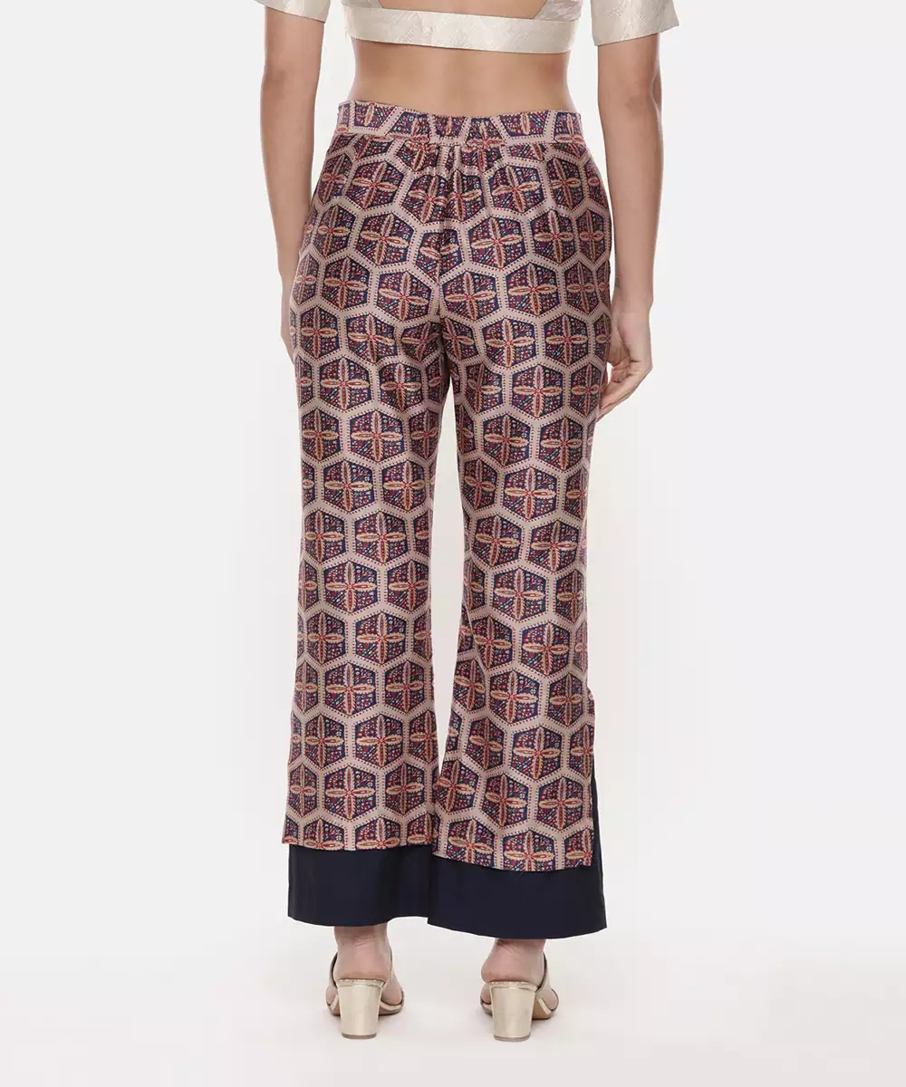 Silk Chanderi Geometric Print Pants. Pair With A Matching Print Blouse To Compete The Look As A Co Ord Set.