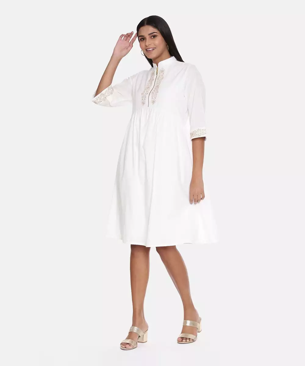 Cream Pure Linen Embroidered Thread Deer Shirt