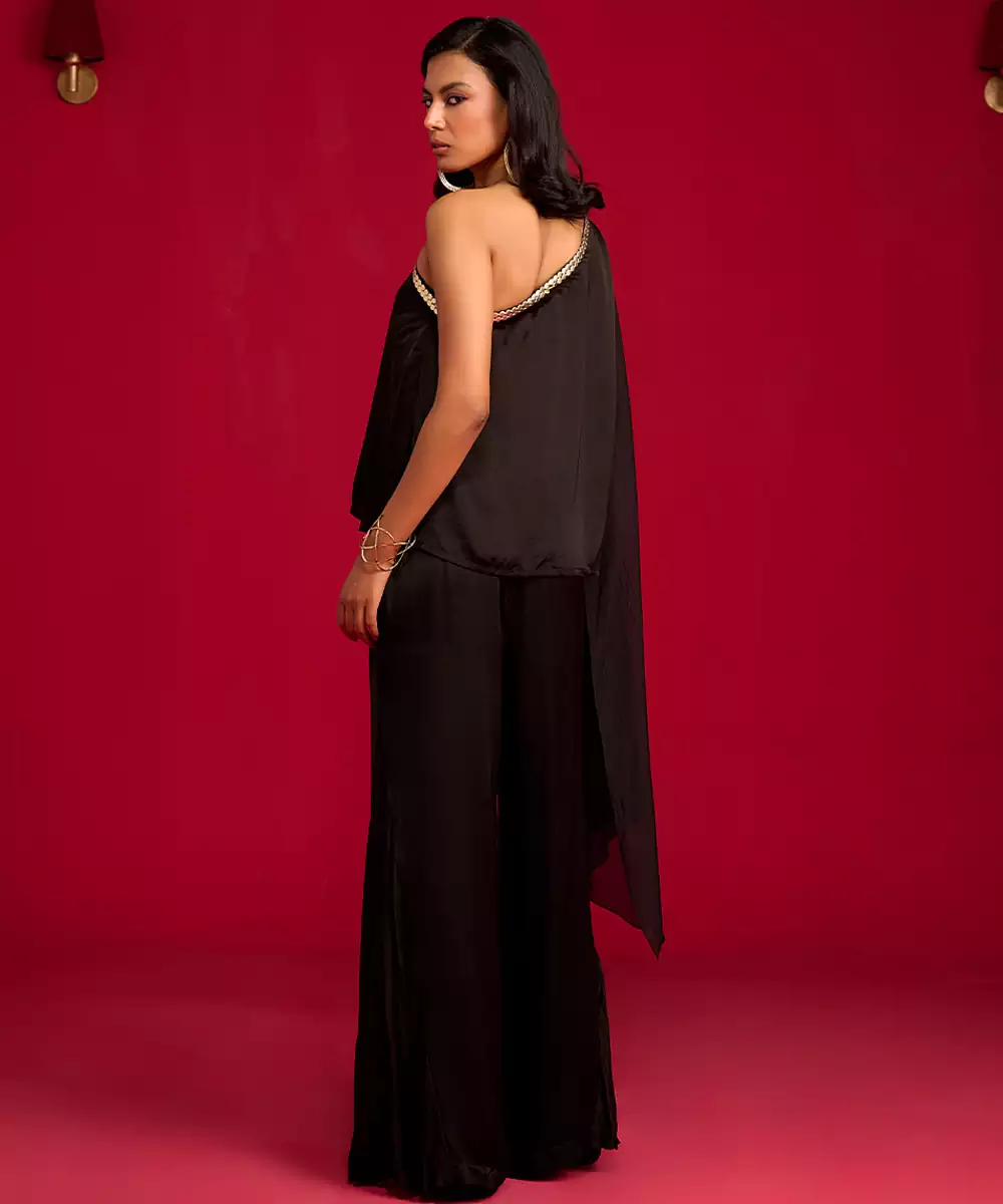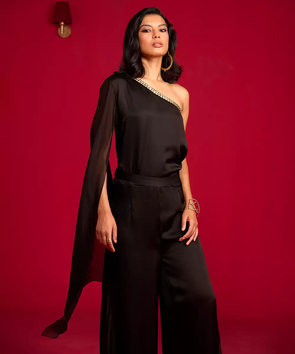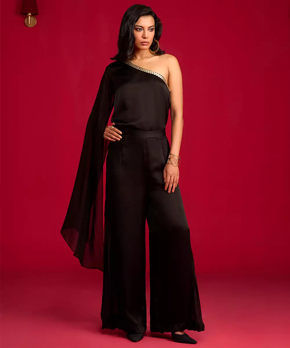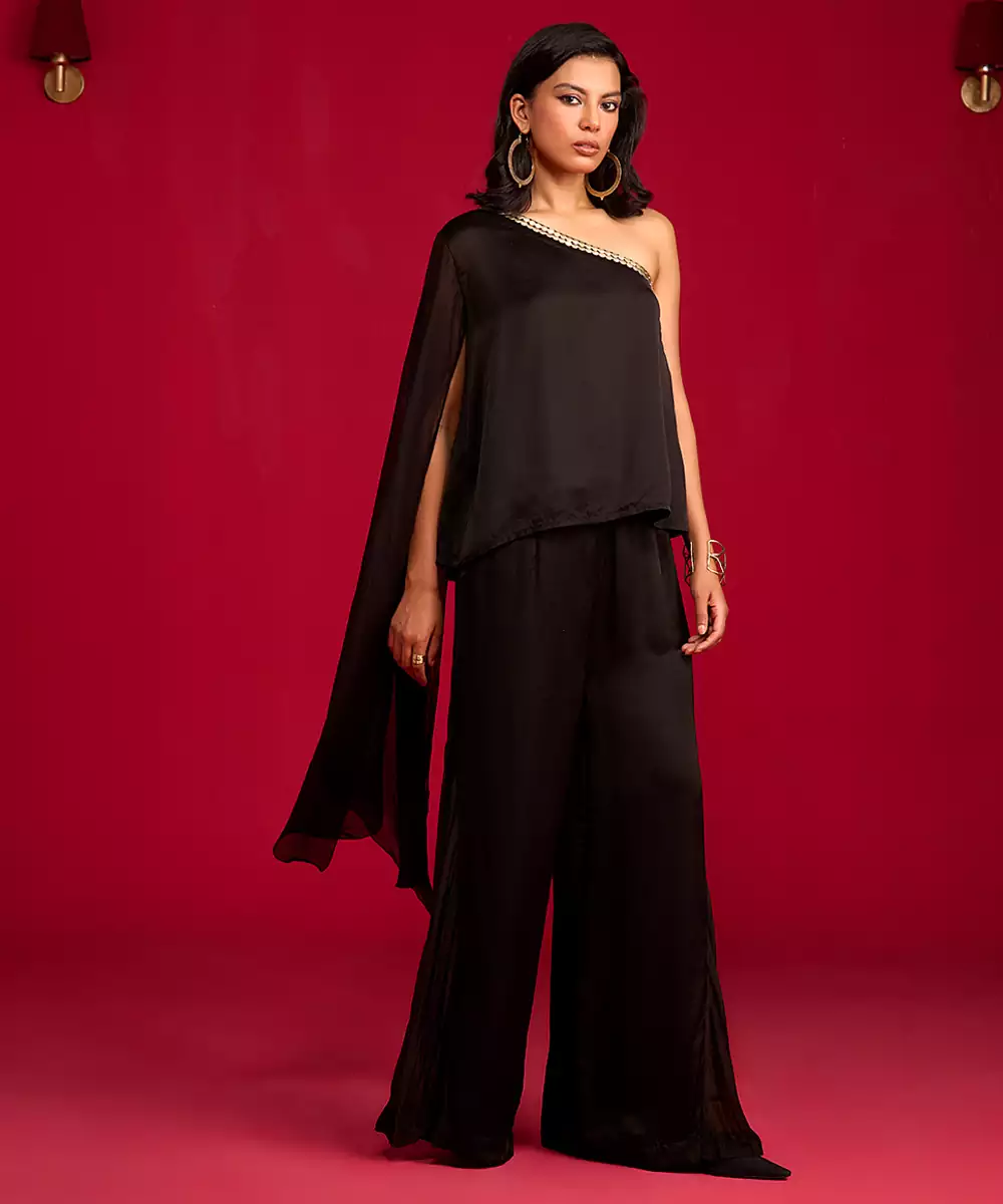 This Black Satin Co Ord Set Exudes Sleek Sophistication With Its Smooth, Lustrous Fabric And Modern, Flattering Silhouette. Designed For Effortless Style, It Offers Both Comfort And Elegance, Making It Perfect For Parties, Dinners, And Special Occasions. Chic, Versatile, And Timeless, This Set Adds A Polished Touch To Any Wardrobe.