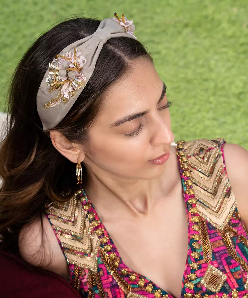 If You Love Bling But Prefer Subtle Tones, This Classy Beige Headband With Intricate Gold And Pink Embellishments Is For You. Hand Embroidered By Local Artisans.