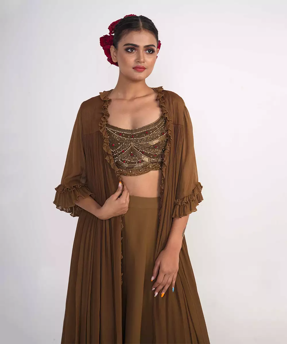 Chocolate Brown Chiffon Co Ord Set.