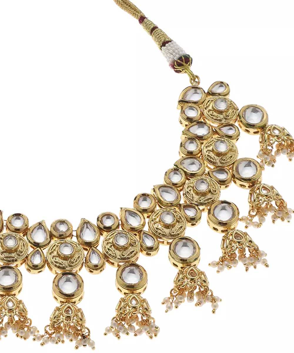 Gold Kundan Necklace Set Colour: Gold Material: Metal Components: 1 Necklace / 1 Pair Of Earring / 1 Maangthika