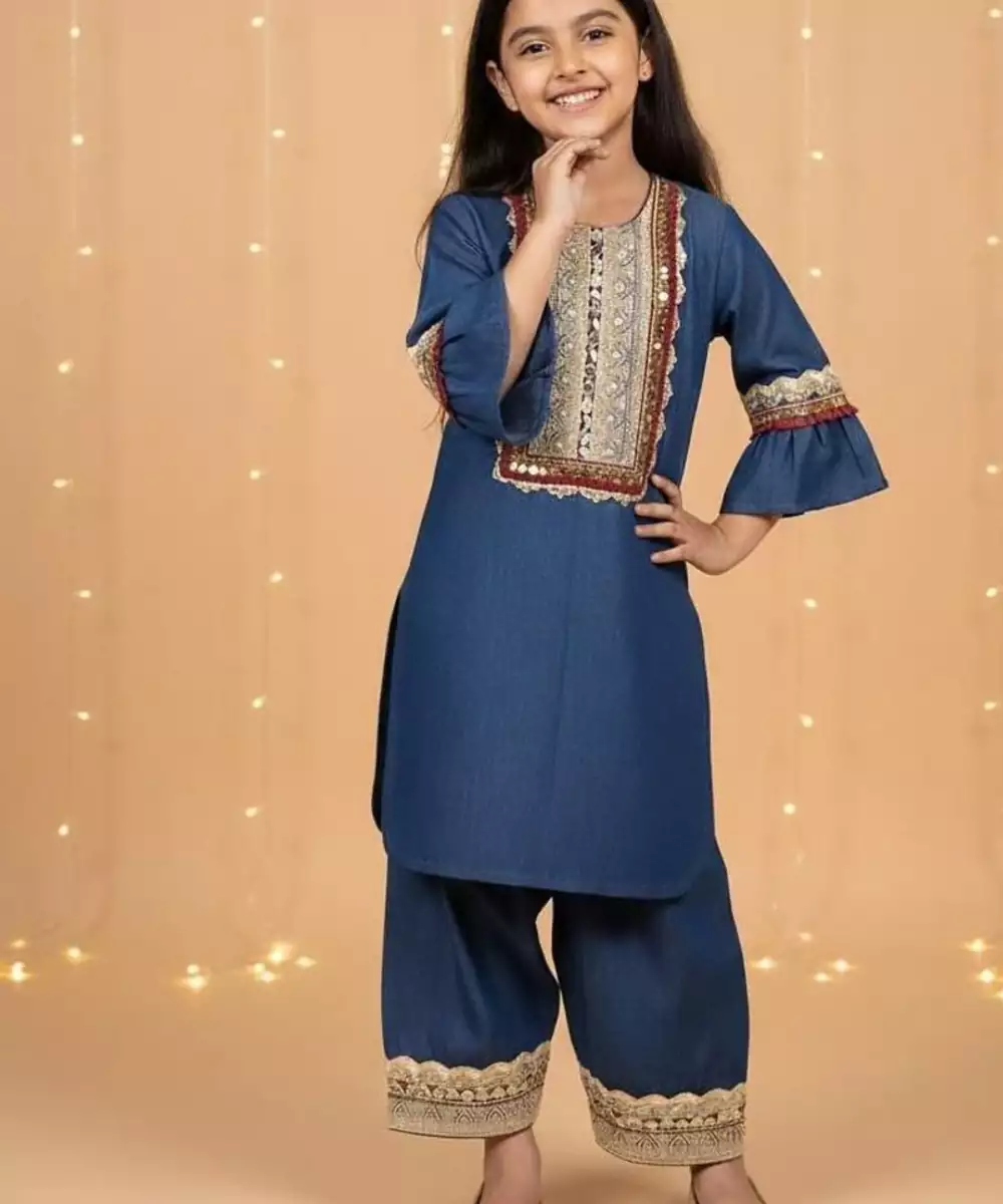 This Blue Embroidered Cotton Kurta Set Exudes Timeless Elegance And Everyday Charm. Crafted From Breathable Cotton Fabric, It Features Intricate Embroidery That Adds A Refined Touch. Perfect For Festive Occasions And Casual Celebrations, It Offers Comfort, Style, And Classic Ethnic Appeal.