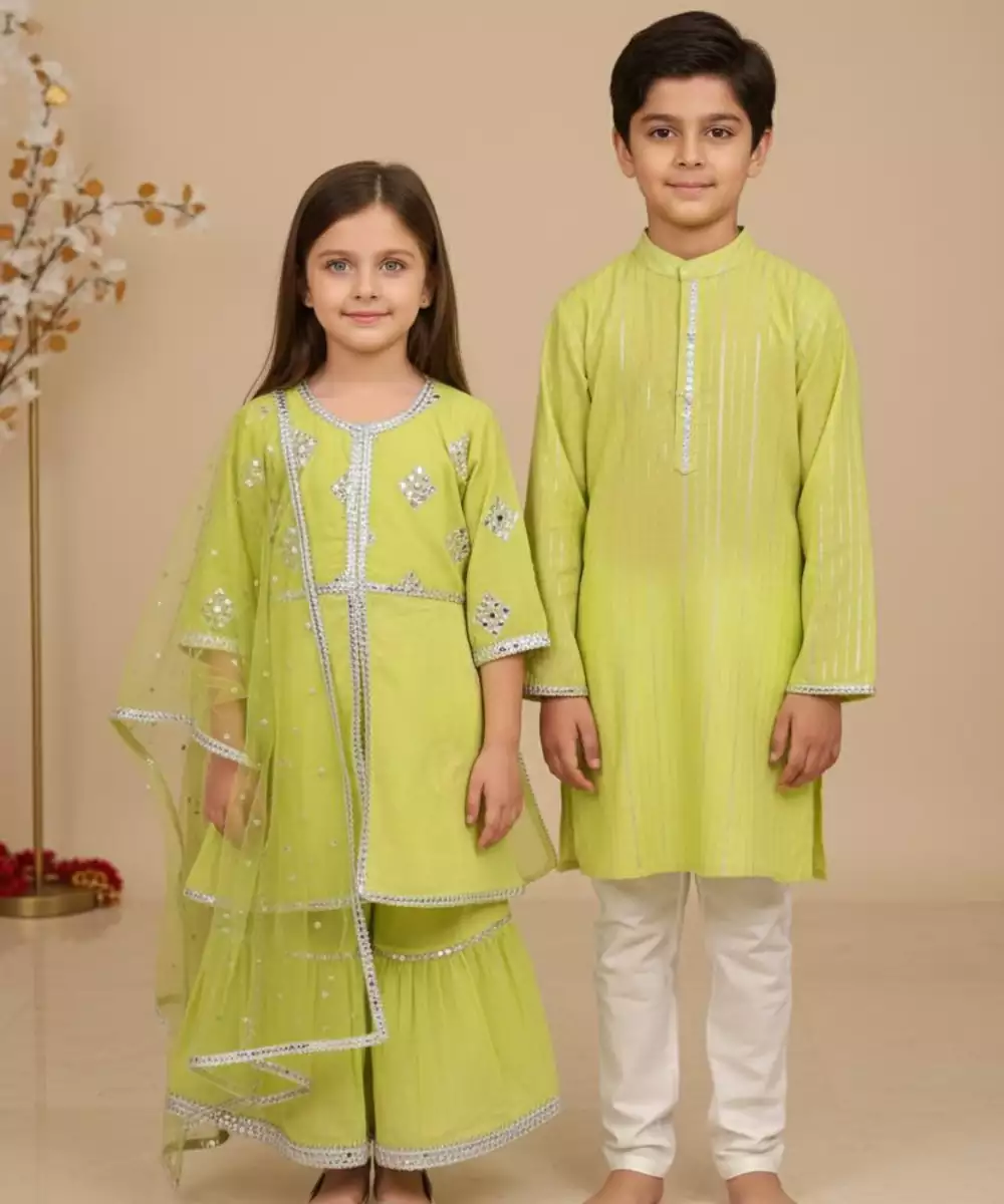 This Green Embroidered Cotton Kurta Pyjama Exudes Fresh Elegance And Traditional Charm. Crafted From Breathable Cotton Fabric, It Features Intricate Embroidery That Adds A Refined Touch. Perfect For Festive Occasions And Celebrations, It Offers All Day Comfort With Timeless Ethnic Appeal.