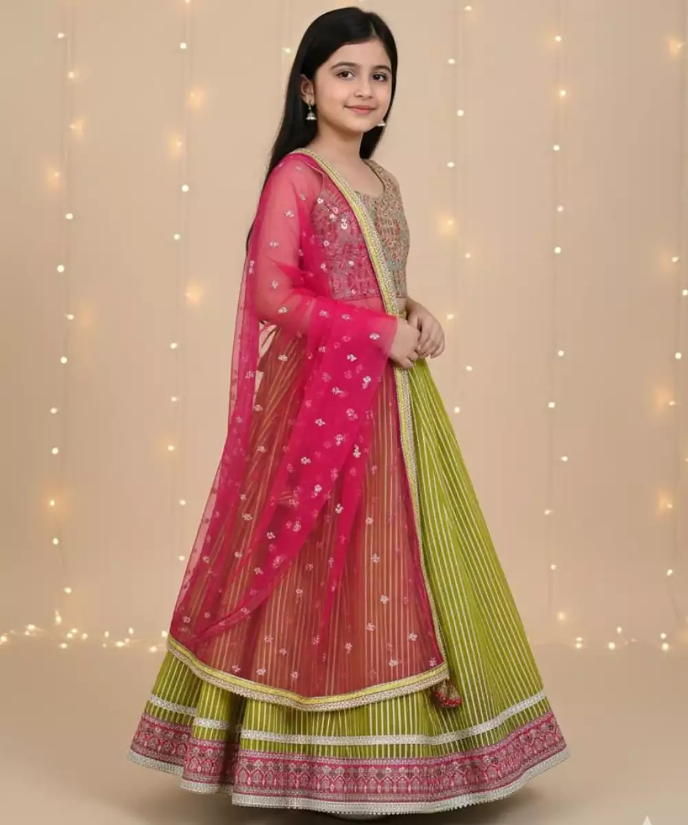 This Green Embroidered Cotton Lehenga Set Exudes Fresh Elegance And Traditional Charm. Crafted From Breathable Cotton Fabric, It Features Intricate Embroidery That Adds A Refined, Graceful Touch. Perfect For Festive Occasions And Celebrations, It Offers Comfort, Style, And Timeless Ethnic Appeal.