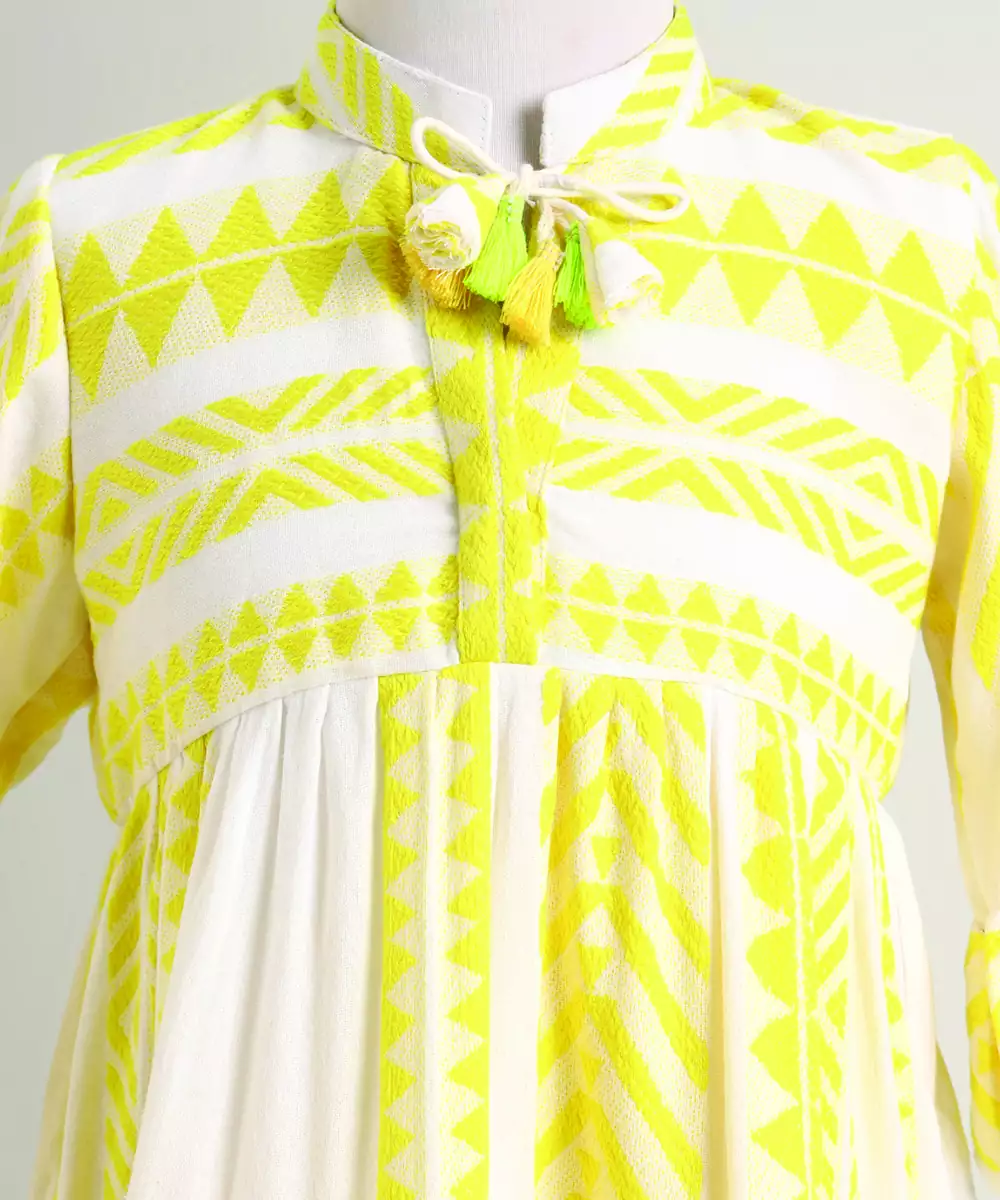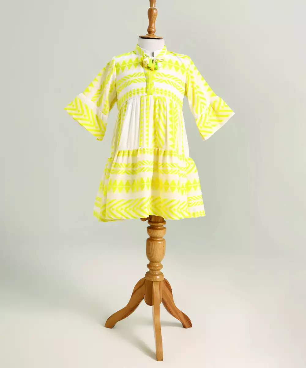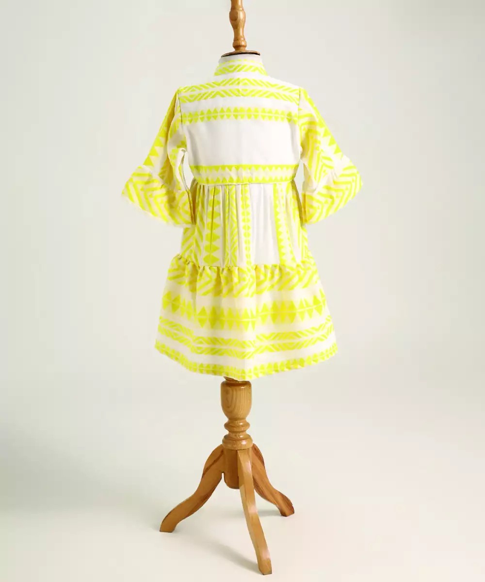 Bright And Breezy, This Yellow Printed Cotton Dress Is Perfect For Sunny Days. Its Lightweight Fabric And Lively Design Make It A Cheerful Addition To Your Everyday Wardrobe.