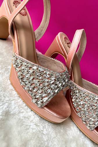 Head Turner Wedges With Silver Diamond Embroidery. Fabric Used Artificial Silk Fabric. Your Next Favourite Purchase For Party Or Wedding Festivities. Open Toe Style And Comes With A Soft Cushion Lining Which Makes It Extremely Comfortable And Can Be Worn For Long Hours. Our Footwear Is Vegan And Handmade By Local Artisans And Made With Utmost Love And Care!