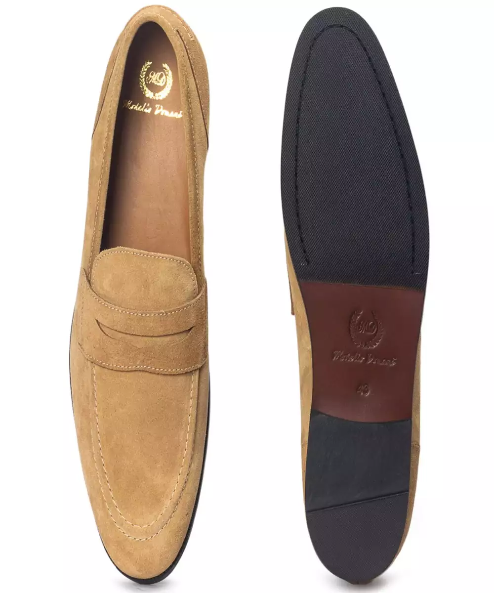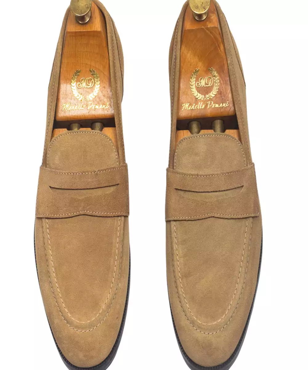 Handcrafted Pure Suede Slipons With Penny Strap, Leather Lining For Comfort And Leather Sole For Class.
