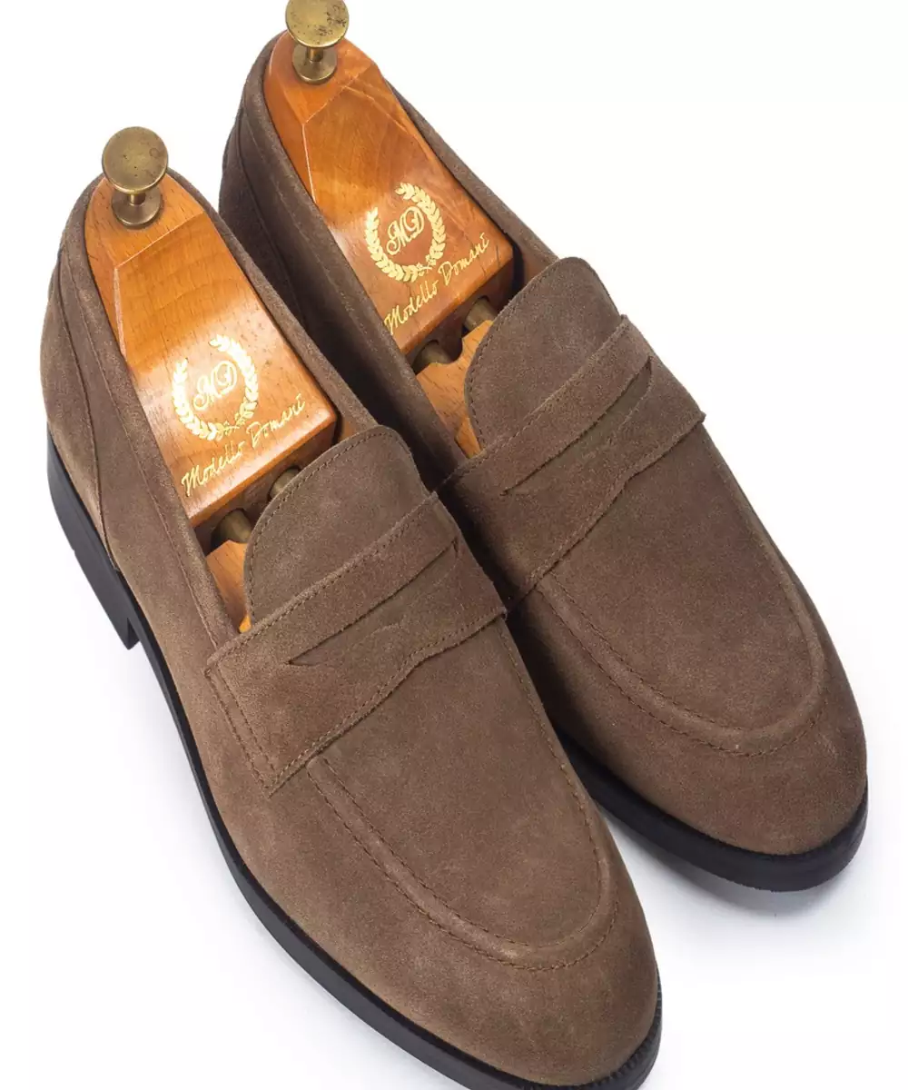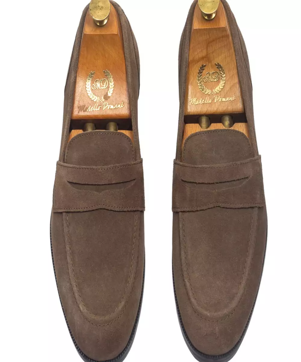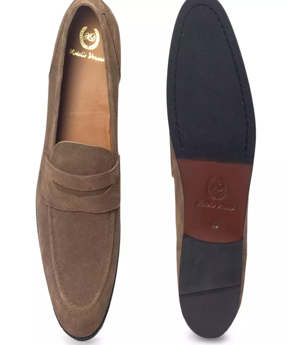Handcrafted Pure Suede Slipons With Penny Strap, Leather Lining For Comfort And Leather Sole For Class.