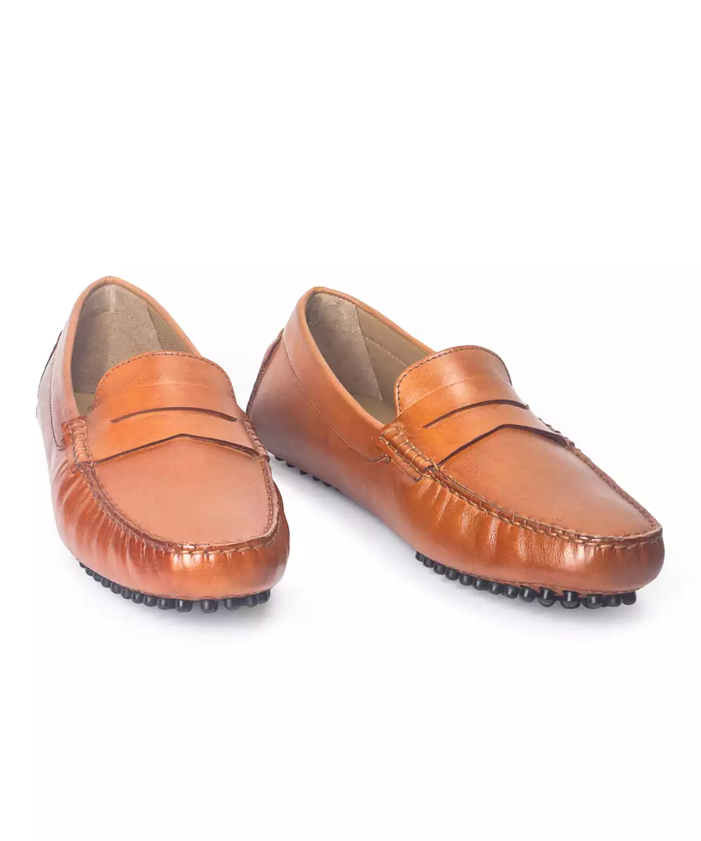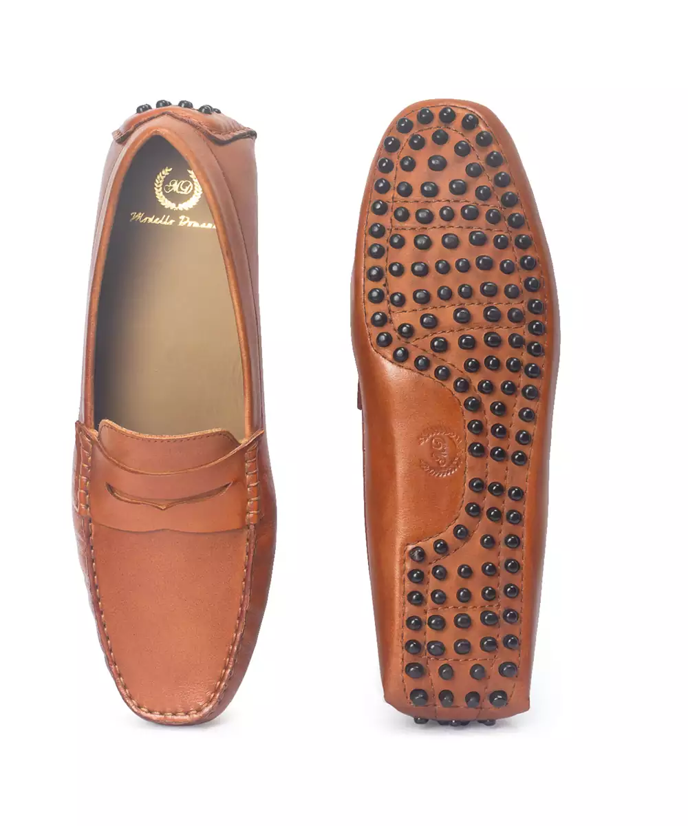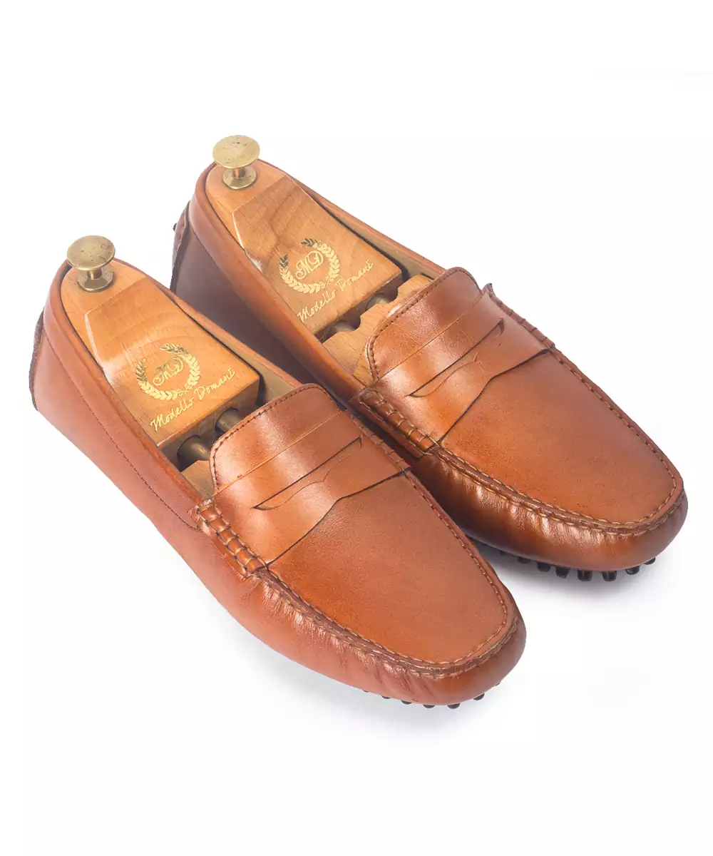 Tan Solid Leather Loafers Crafted From Premium Genuine Leather, Offering Both Comfort And Durability. Designed With A Sleek Silhouette And Cushioned Insole, These Versatile Shoes Are Ideal For Formal Events Or Smart Casual Wear. The Rich Tan Finish Adds A Sophisticated Touch, Perfect For Elevating Any Wardrobe.
