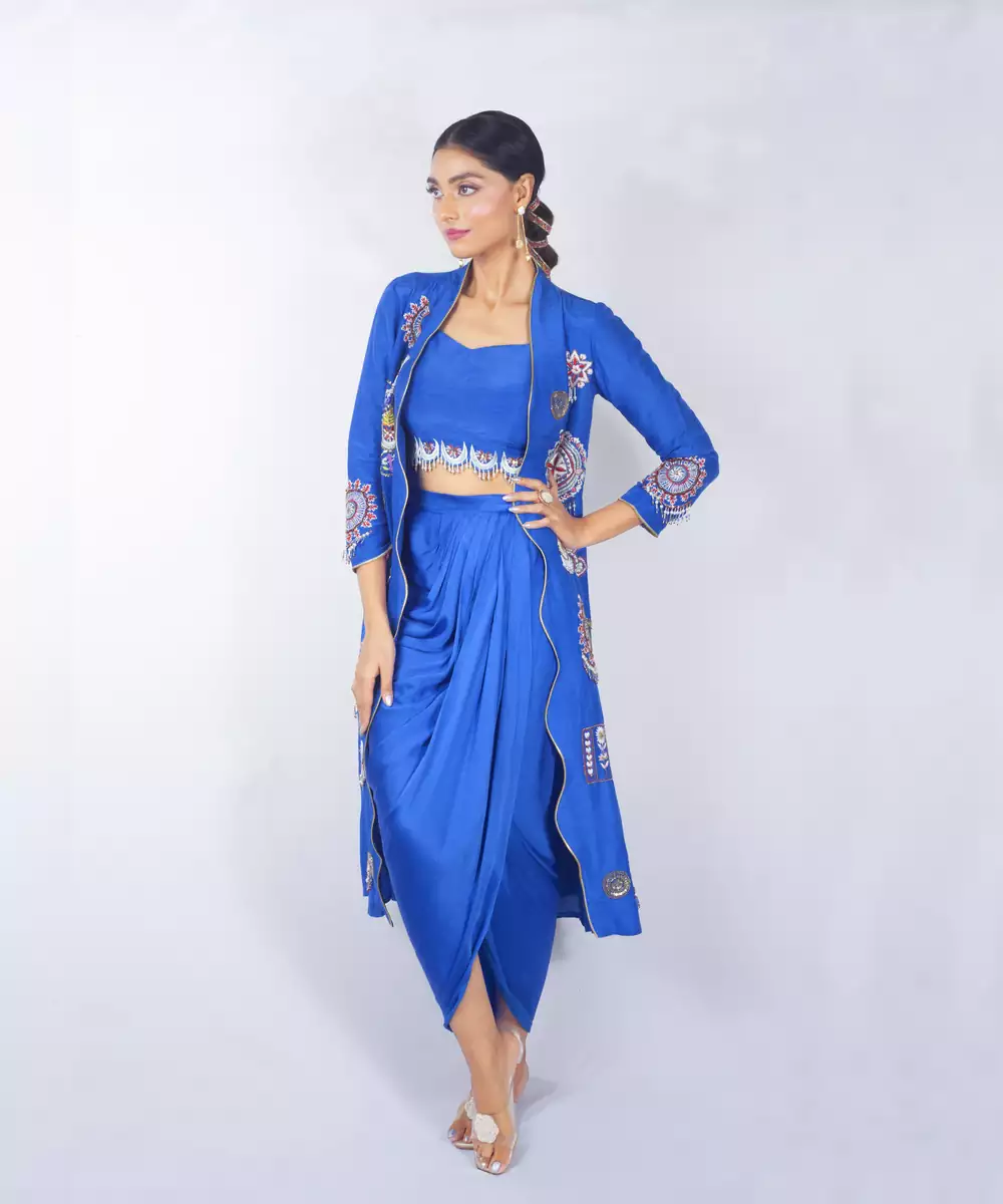 This Blue Embroidered Linen Co Ord Set Showcases Soft Elegance With A Contemporary Touch. Crafted From Breathable Linen Fabric, It Features Delicate Embroidery That Adds A Refined, Stylish Charm. Perfect For Day Gatherings And Festive Occasions, It Offers A Comfortable Fit, Airy Feel, And Timeless Modern Appeal.