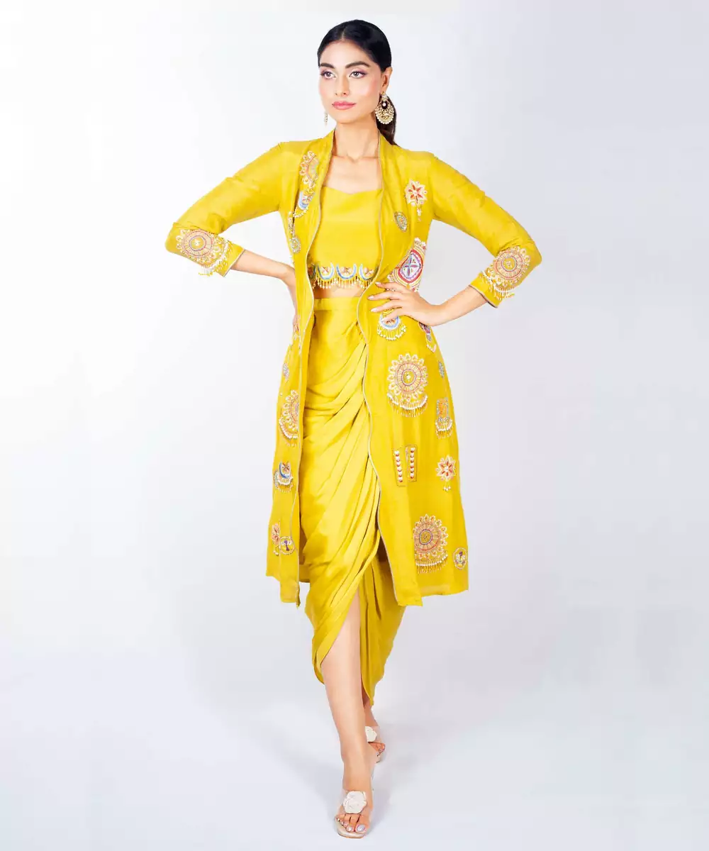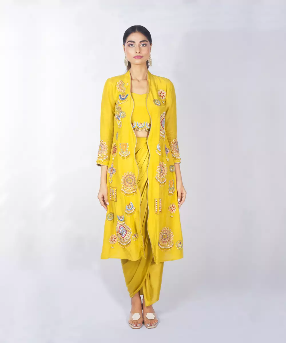 This Yellow Embroidered Linen Co Ord Set Showcases Soft Elegance With A Contemporary Touch. Crafted From Breathable Linen Fabric, It Features Delicate Embroidery That Adds A Refined, Stylish Charm. Perfect For Day Gatherings And Festive Occasions, It Offers A Comfortable Fit, Airy Feel, And Timeless Modern Appeal.