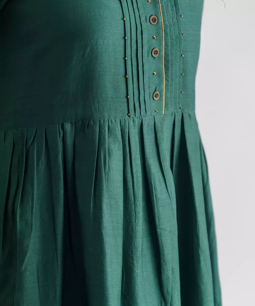 Bottle Green Bead And Sequence Work Chanderi Silk Kurta (With Slip) With Pant And Dupatta Colour: Green Fabric: Chanderi Components: 1 Kurta / 1 Pant / 1 Dupatta / 1 Slip
