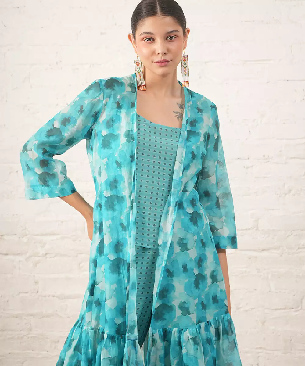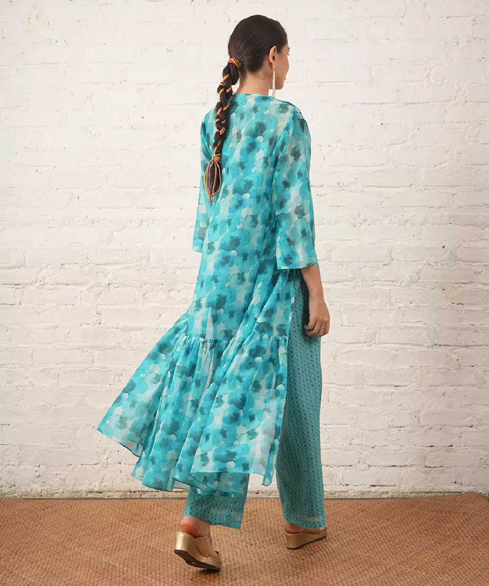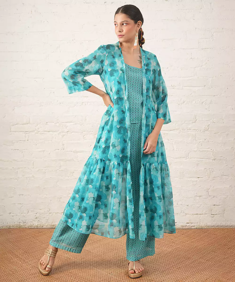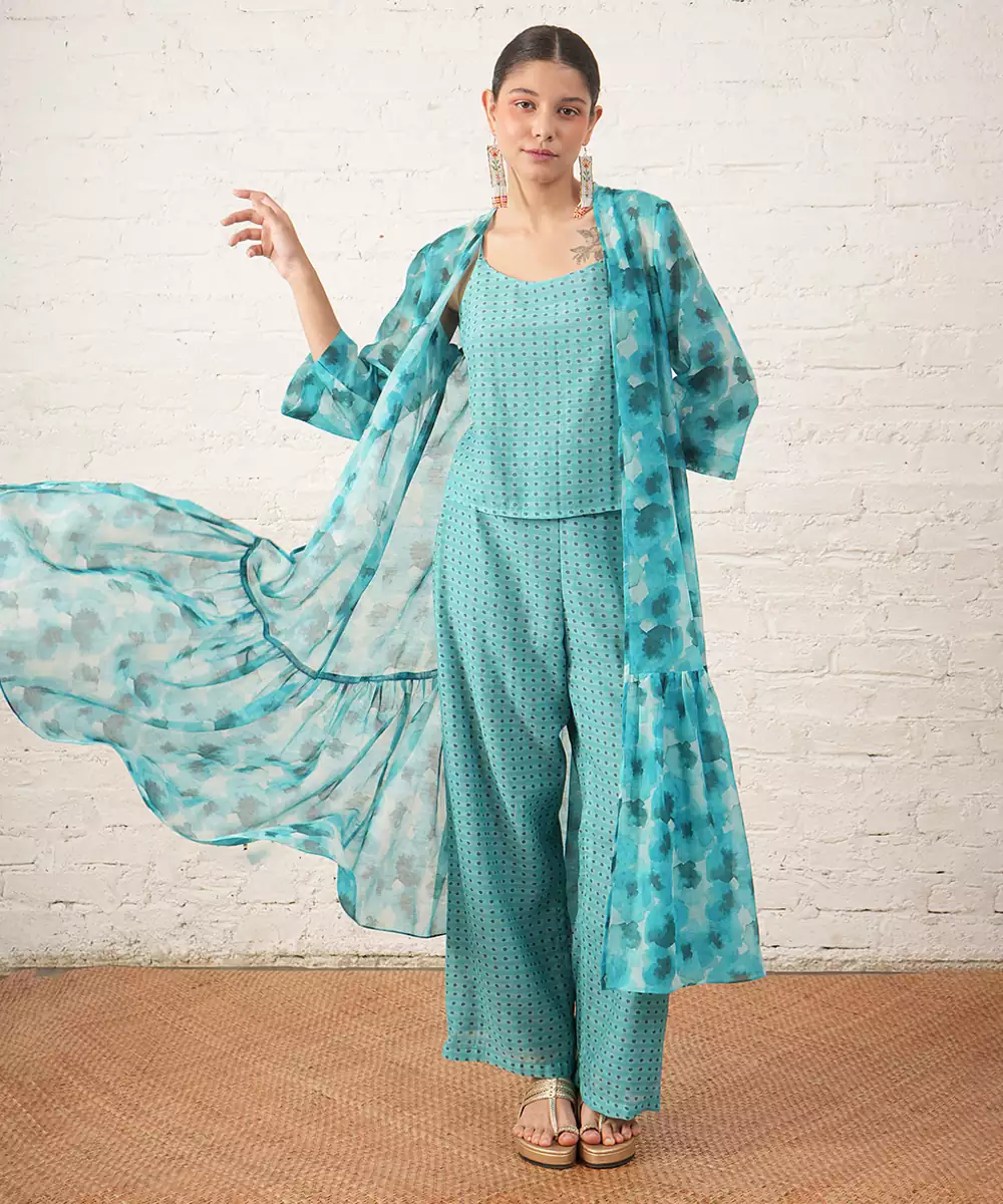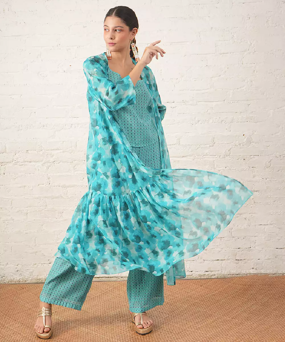 Aqua Blue Printed Chanderi Co Ord Set