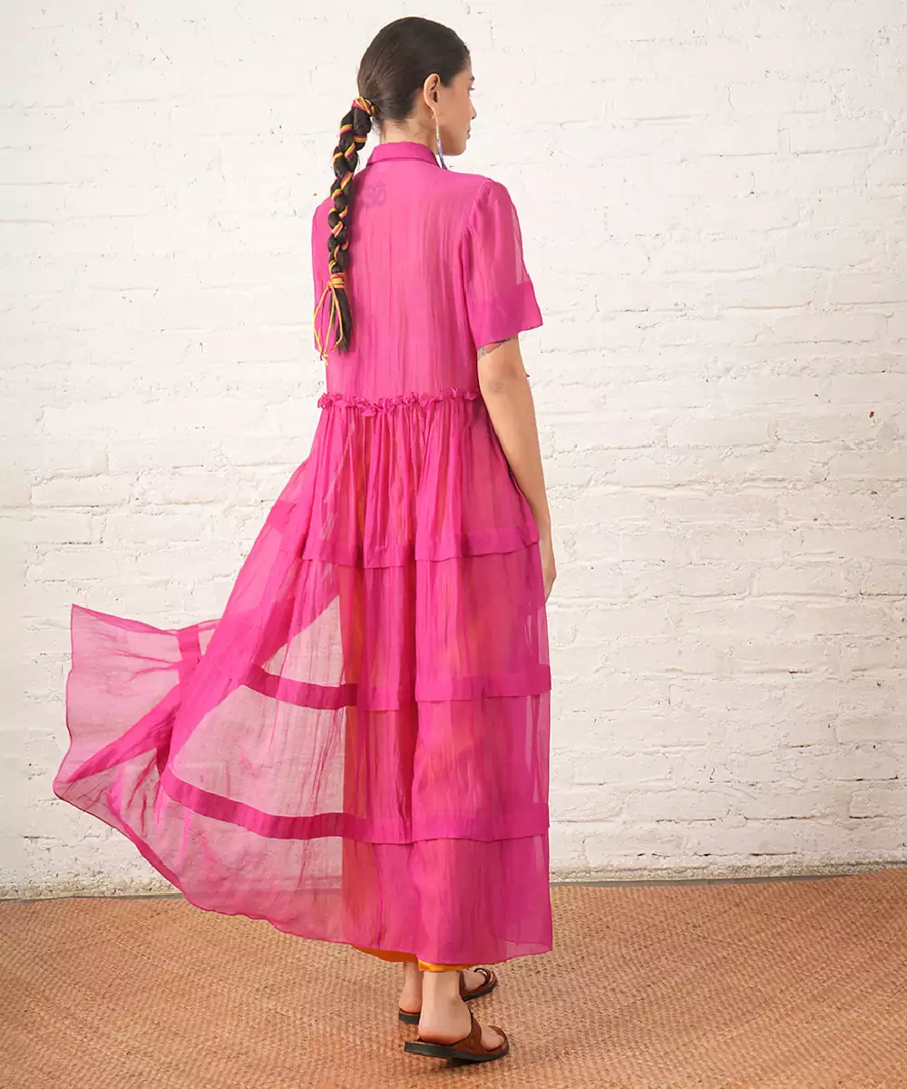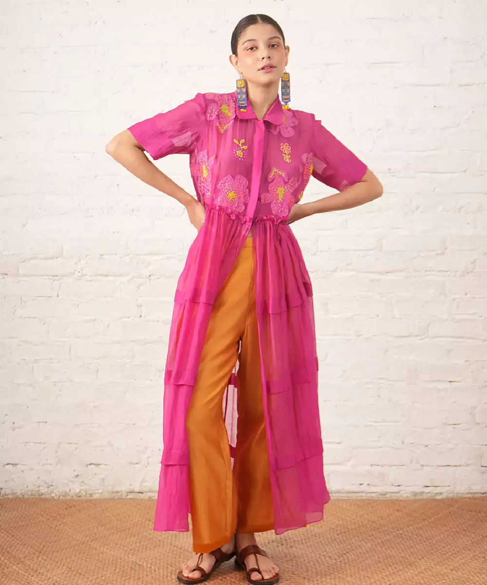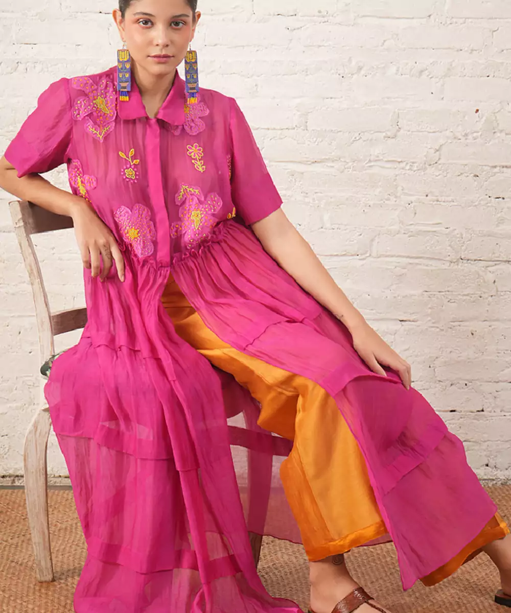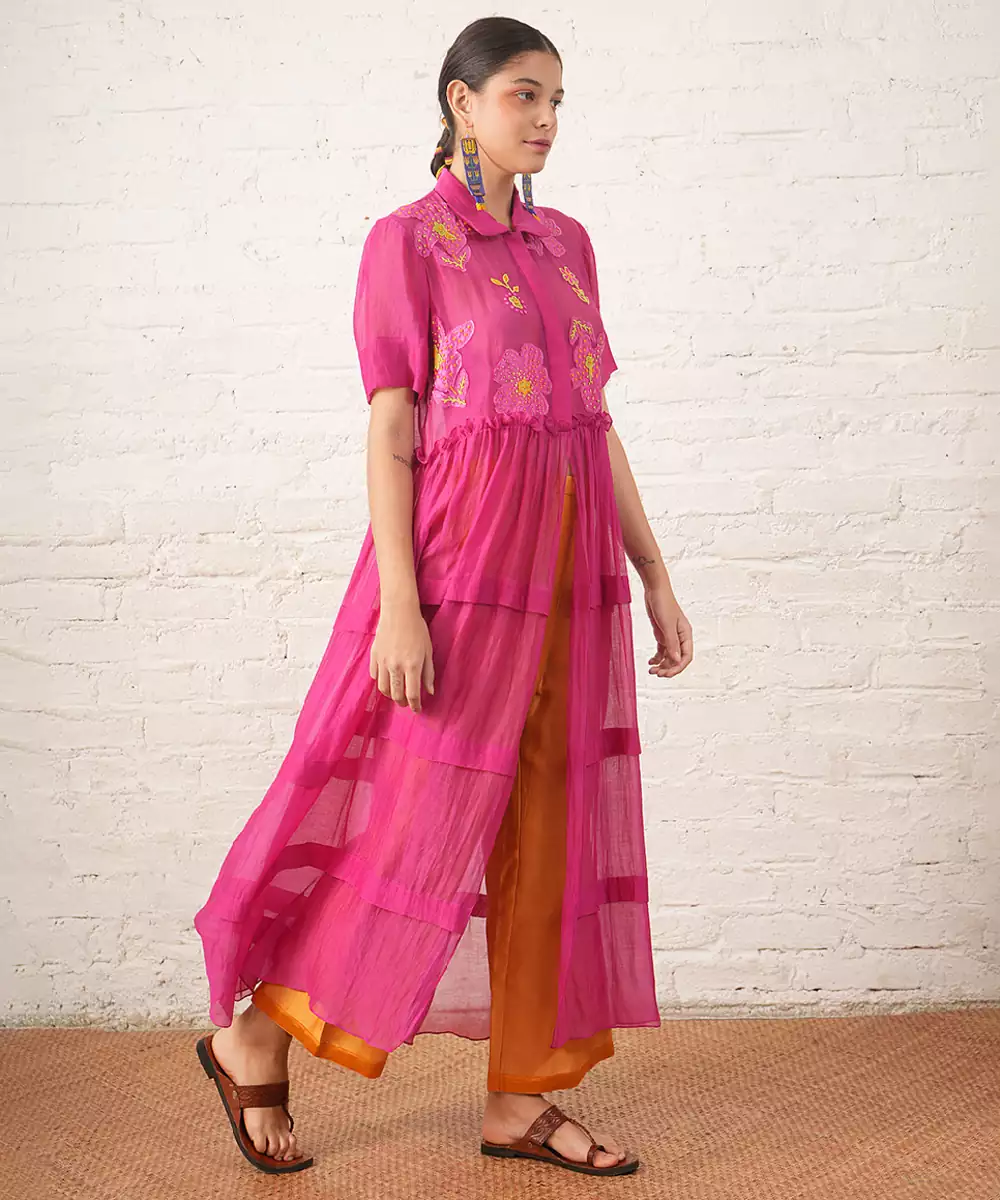 Fuchsia Pink Embroidered Chanderi Co Ord Set