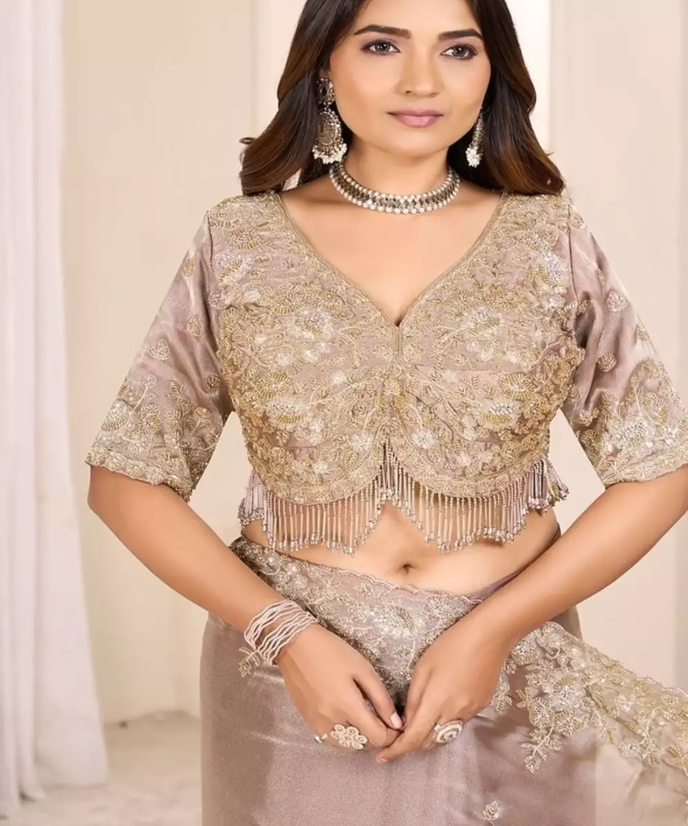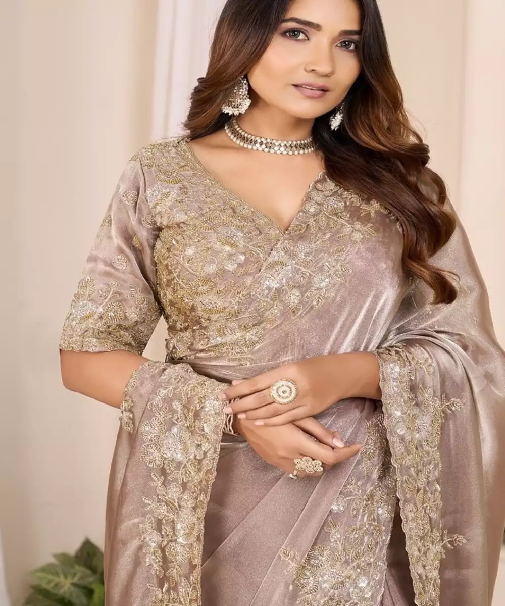 The Chiku Embroidered Georgette Saree Exudes Elegance And Grace. Crafted From Lightweight Georgette, It Drapes Beautifully. Intricate Tone On Tone Embroidery, Often Featuring Floral Or Traditional Motifs, Enhances Its Sophisticated Appeal. This Saree Is Perfect For Special Occasions, Offering A Subtle Yet Luxurious Look. It Pairs Well With Gold Or Contrasting Jewelry.