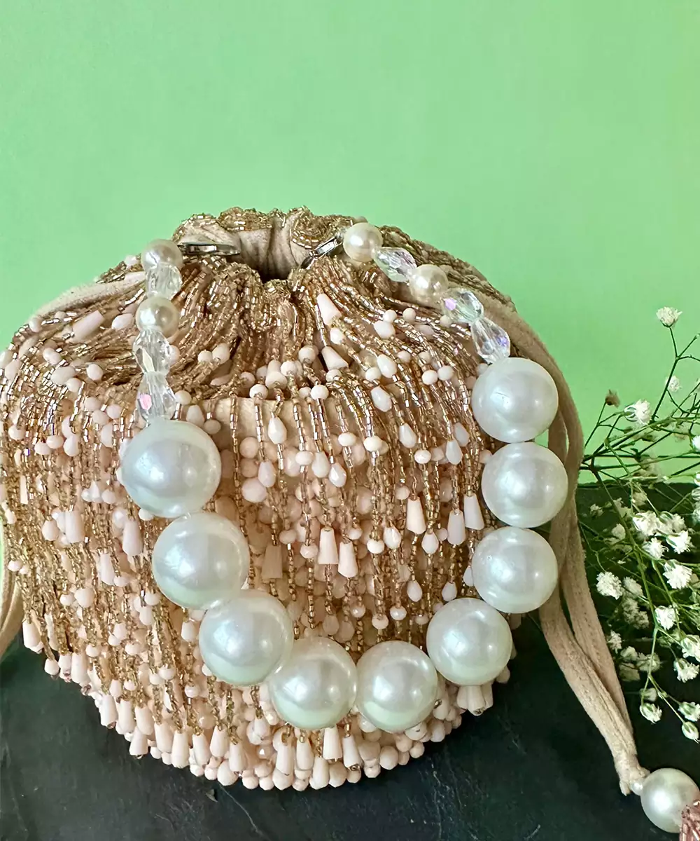 Ritzy Jewel And Crystal Studded Pink Potli With A Snazzy And Dazzling Finish To Add That Dazzle To Your Look