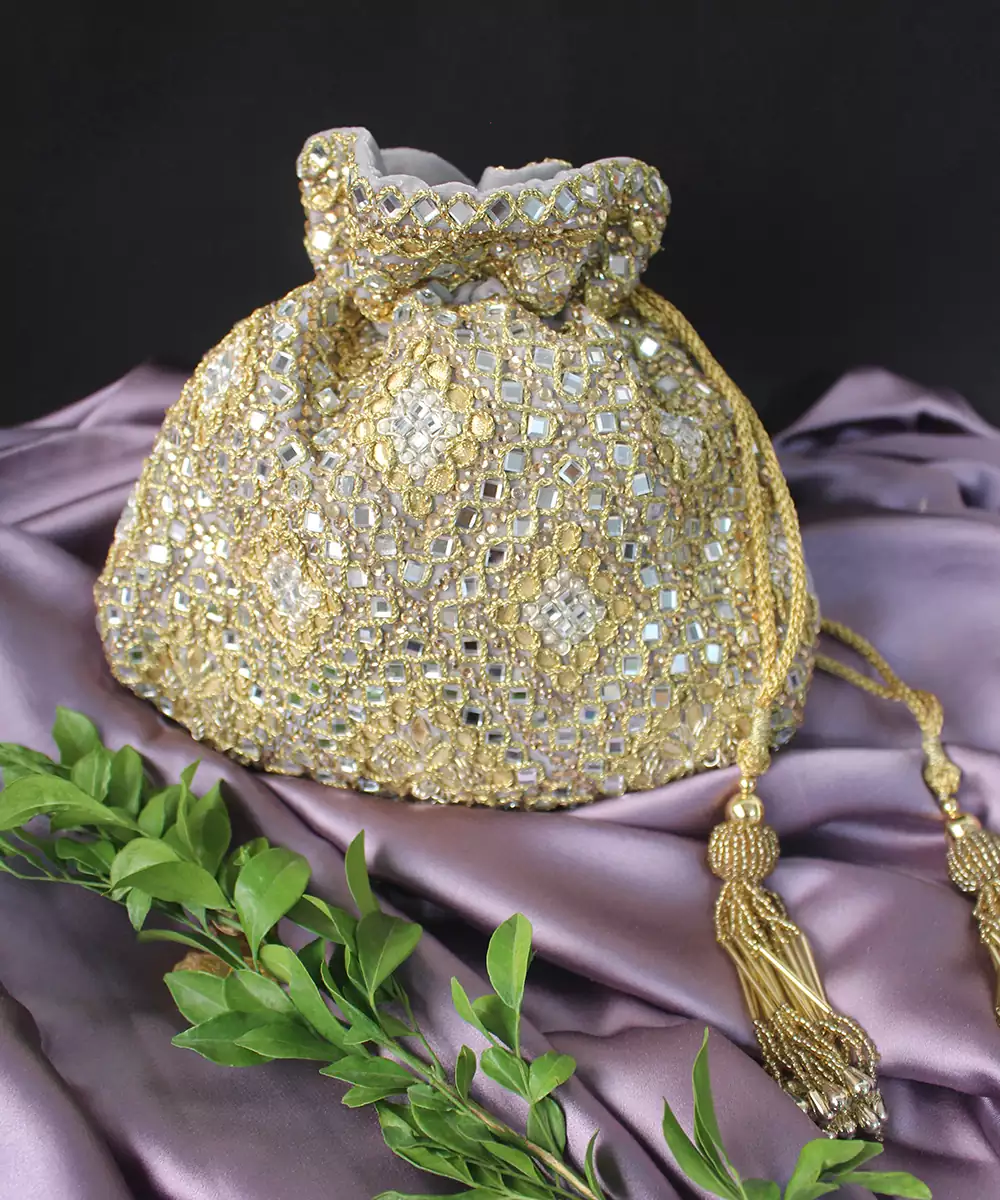 A Combination Of Mirror And Abla Work In Gold Along With The Tassels.