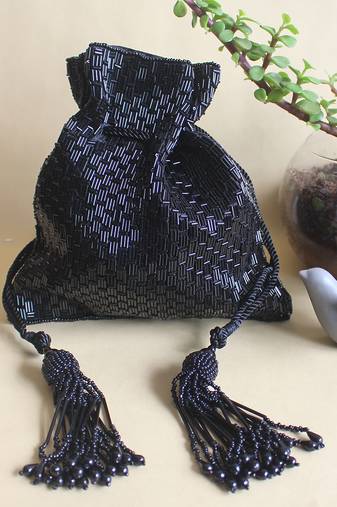 Stylish Salli Work With A Diamond Studded Handle And Matching Tassels In Gold That Would Fit Your Day And Night Looks.