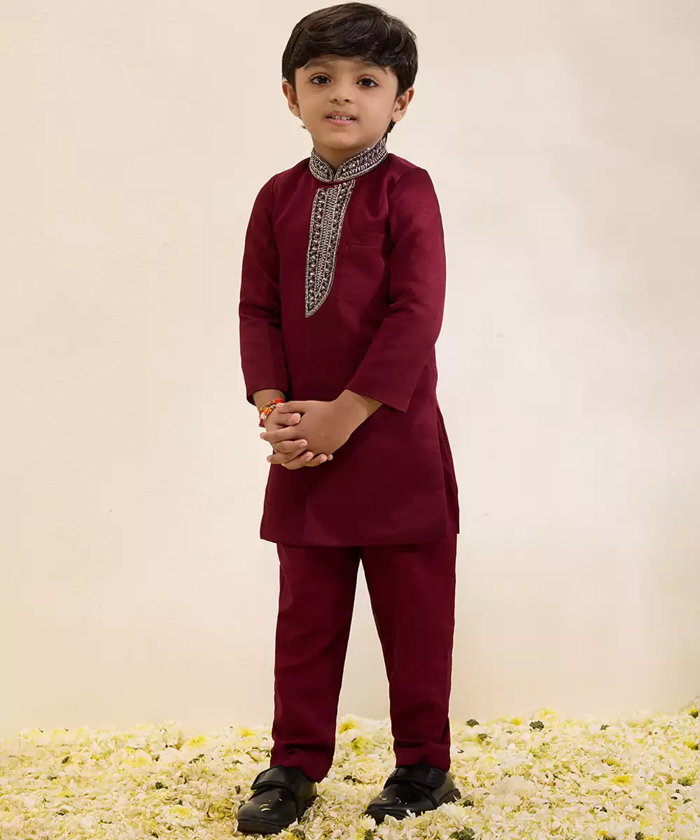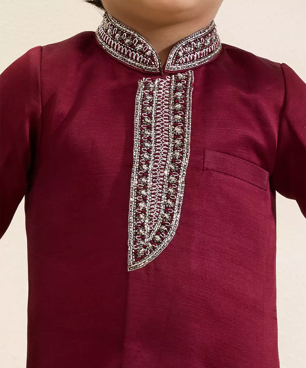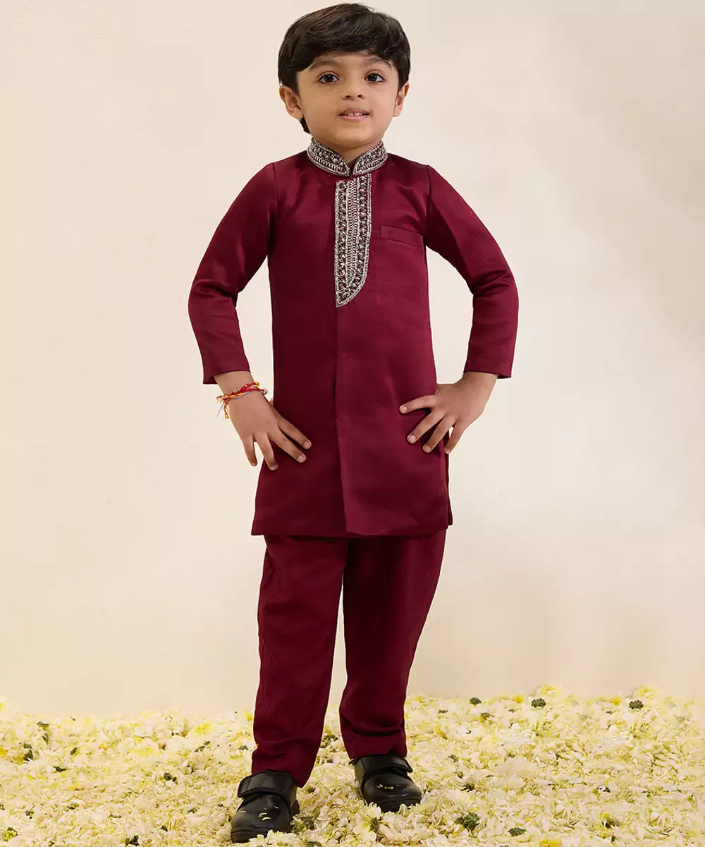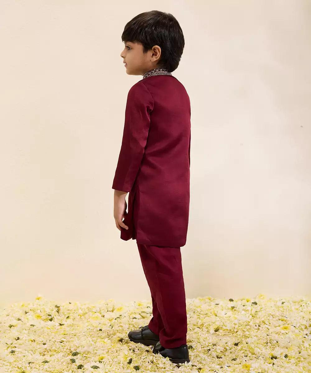 This Maroon Plain Linen Sherwani Set Combines Traditional Charm With Modern Sophistication. Crafted From Breathable Linen, It Offers A Refined Silhouette And Comfortable Fit. The Rich Maroon Hue Adds A Regal Touch, Making It Perfect For Weddings, Festive Occasions, And Formal Celebrations. A Timeless And Elegant Choice For Special Events.