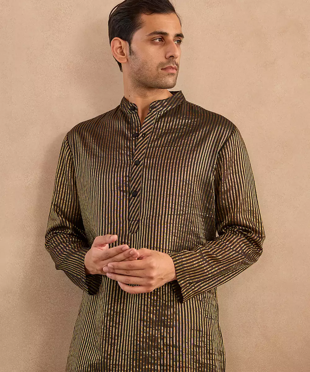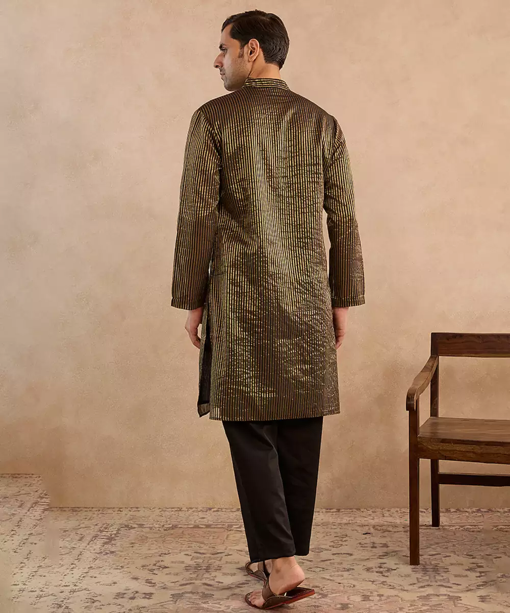 This Black Embroidered Chanderi Kurta Blends Regal Charm With Modern Elegance. Featuring Fine Embroidery On Rich Chanderi Fabric, It Creates A Graceful Festive Look. Perfect For Evening Celebrations, Weddings, And Formal Ethnic Occasions, This Kurta Pairs Well With Churidar Or Straight Pants For Refined Style.
