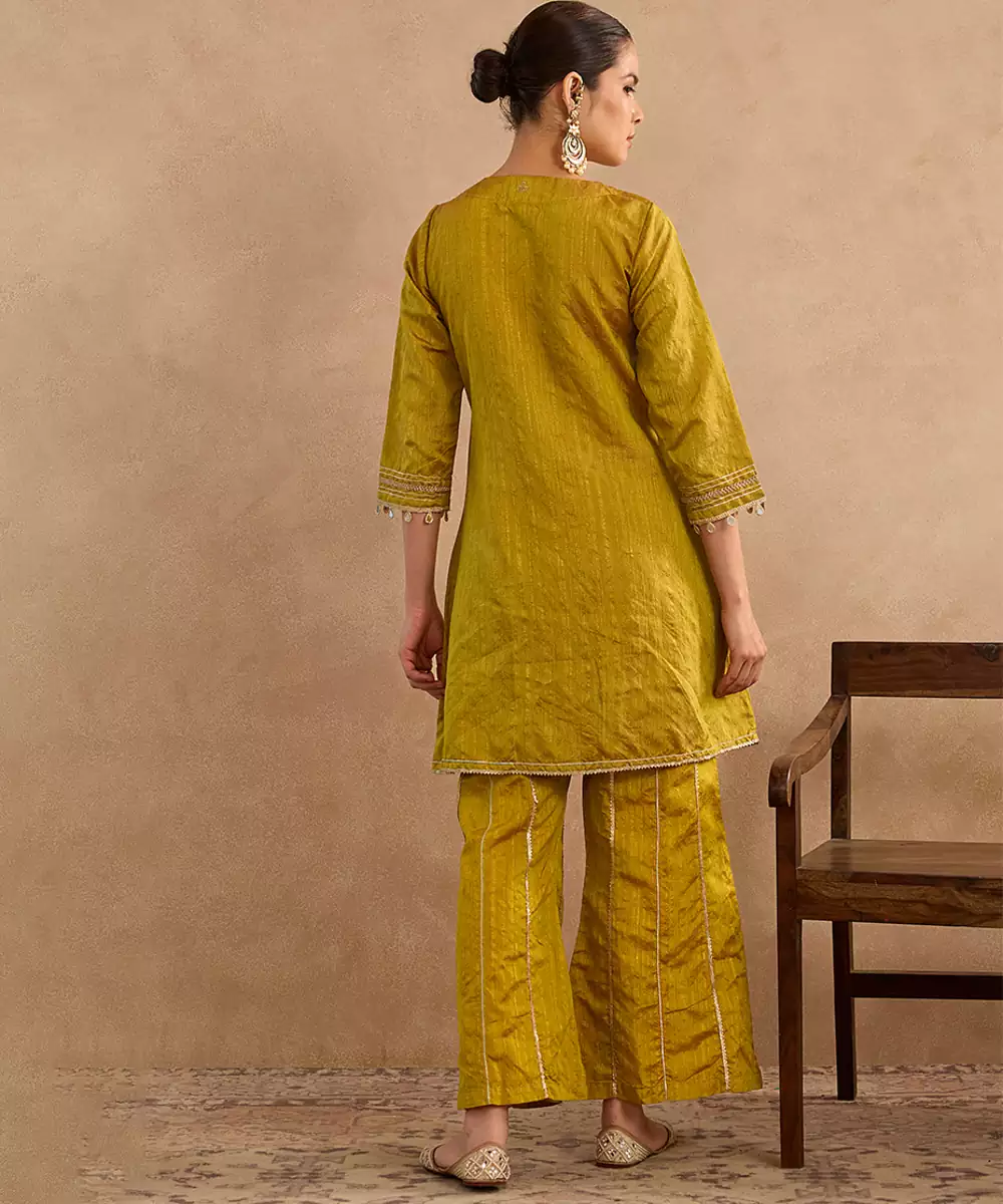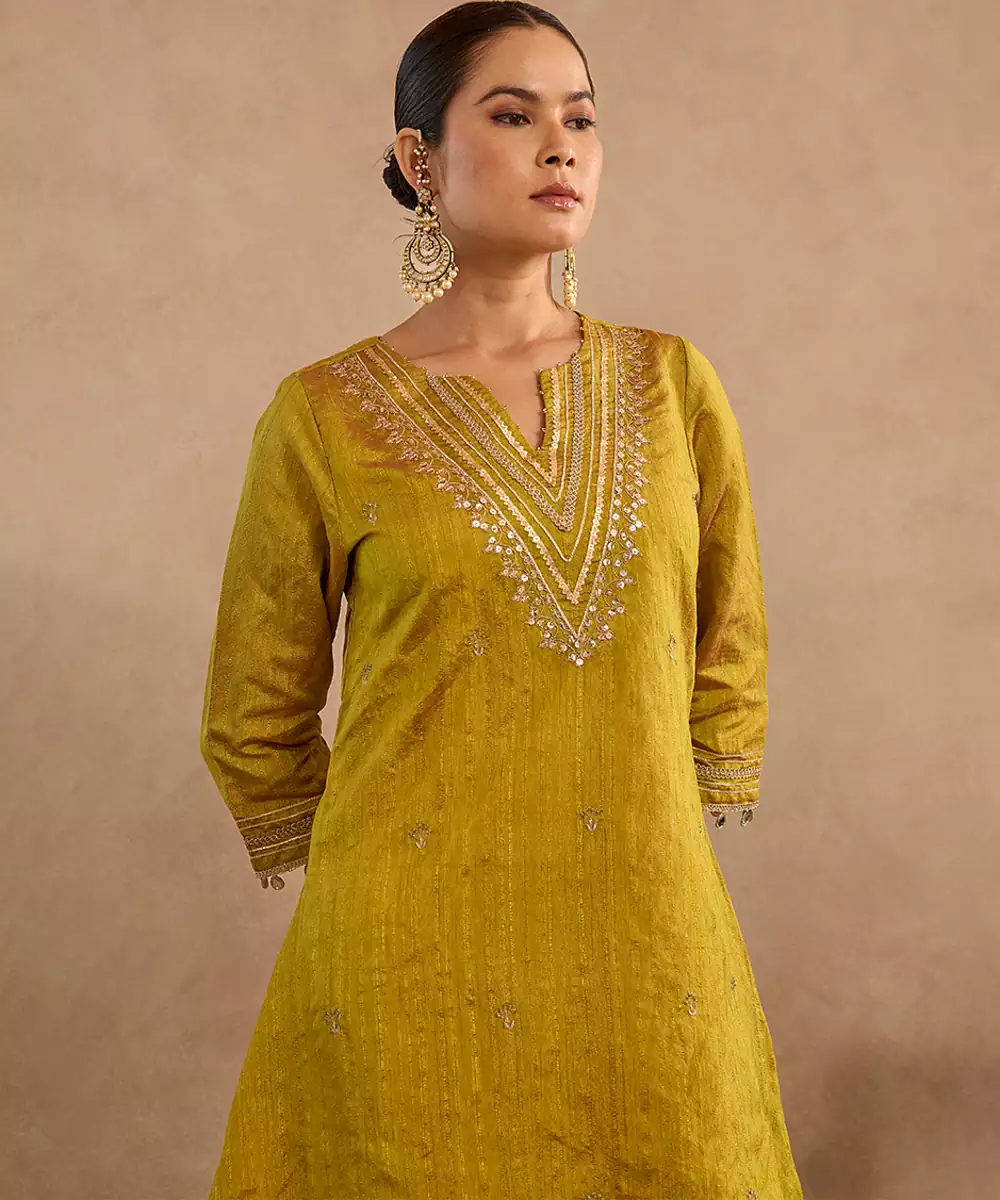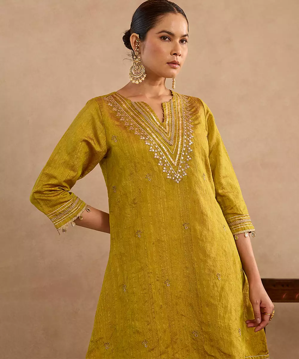 This Green Embroidered Raw Silk Kurta Set Blends Traditional Artistry With Luxurious Raw Silk Texture. Featuring Intricate Embroidery And A Coordinated Bottom, It Offers A Graceful Festive Silhouette. Perfect For Weddings, Cultural Events, And Celebrations, This Set Ensures Comfort While Reflecting Timeless Ethnic Sophistication.