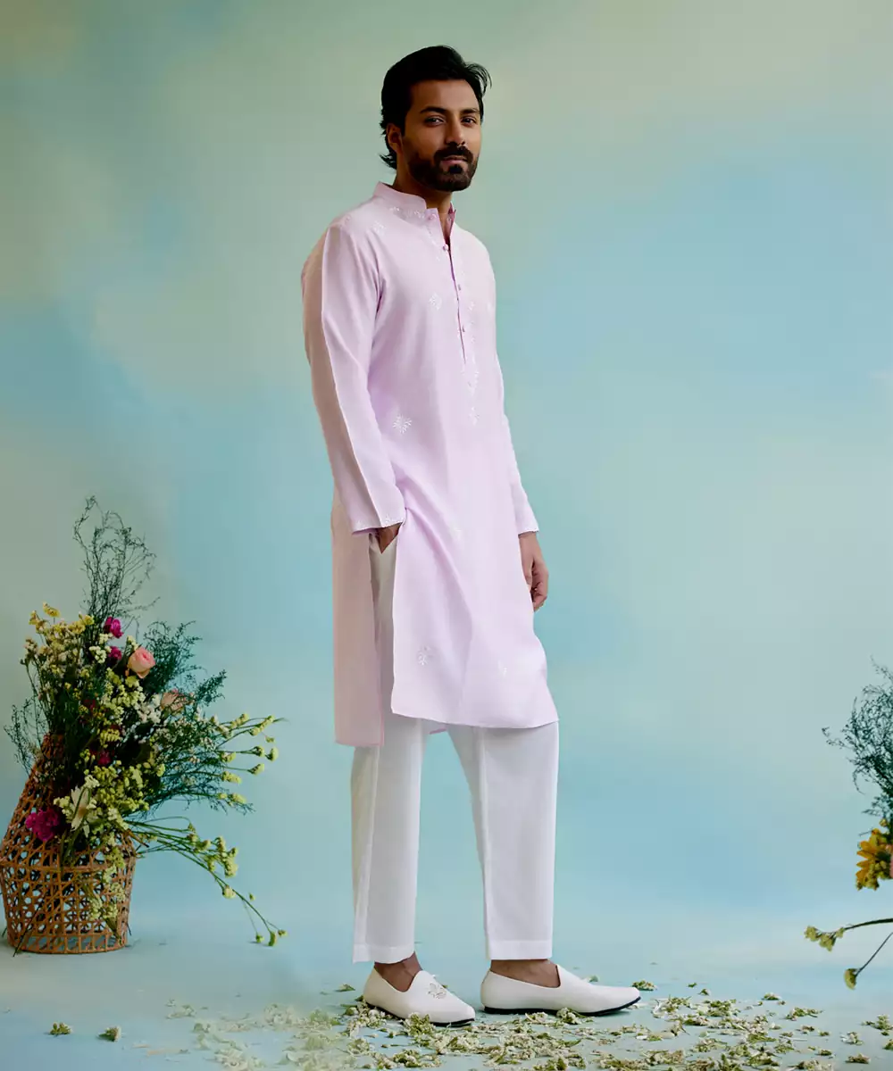 Men's Kurta In Lilac Chanderi Fabric With Full Length Sleeves.