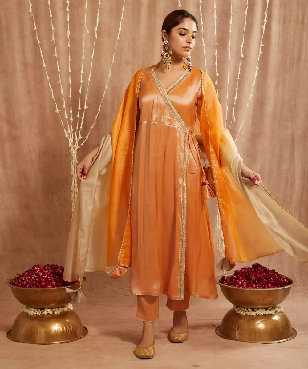 Orange Shimmer Tissue Angrakha With