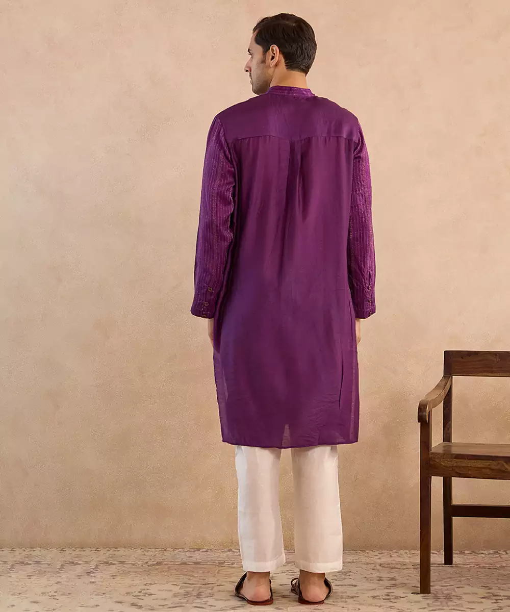 The Purple Embroidered Silk Kurta Set Exudes Regal Sophistication With Fine Embroidery And Vibrant Silk Texture. Paired With A Matching Bottom, It Creates A Striking Festive Ensemble. Ideal For Weddings, Receptions, And Cultural Functions, This Set Blends Traditional Beauty With Modern Elegance.