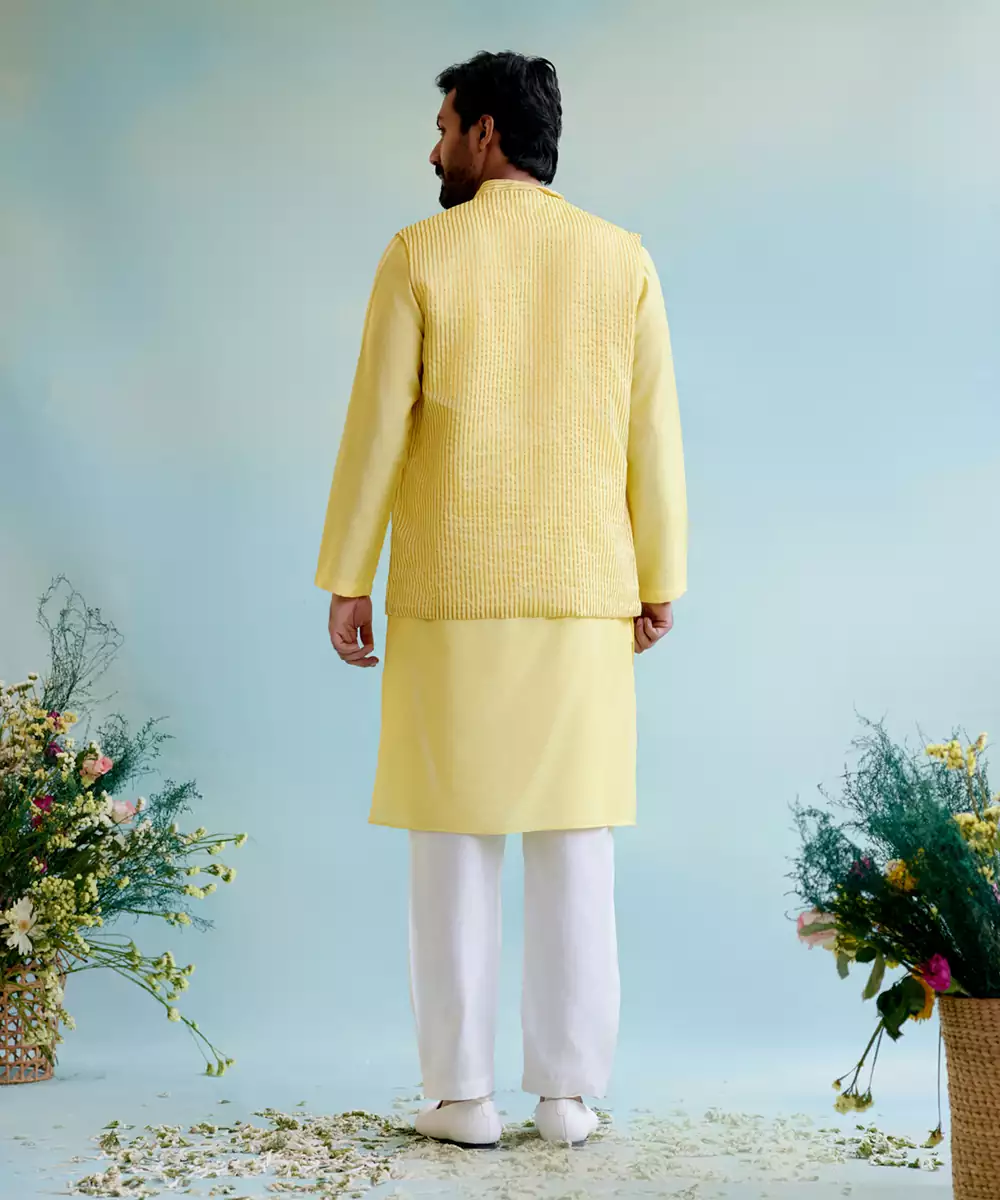 Men's Nehru Jacket In Sunshine Glow In Stripe Tissue Fabric.