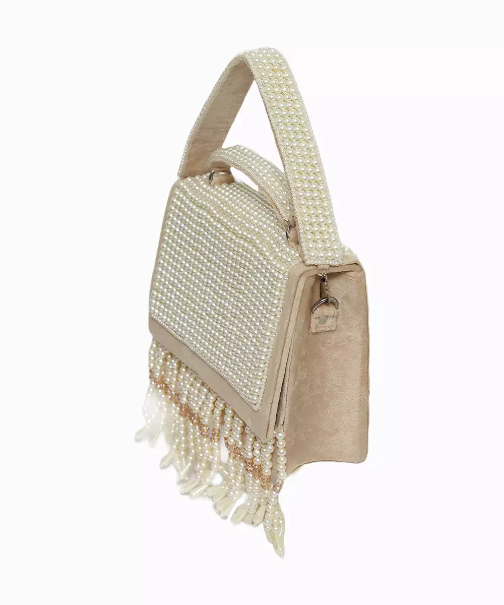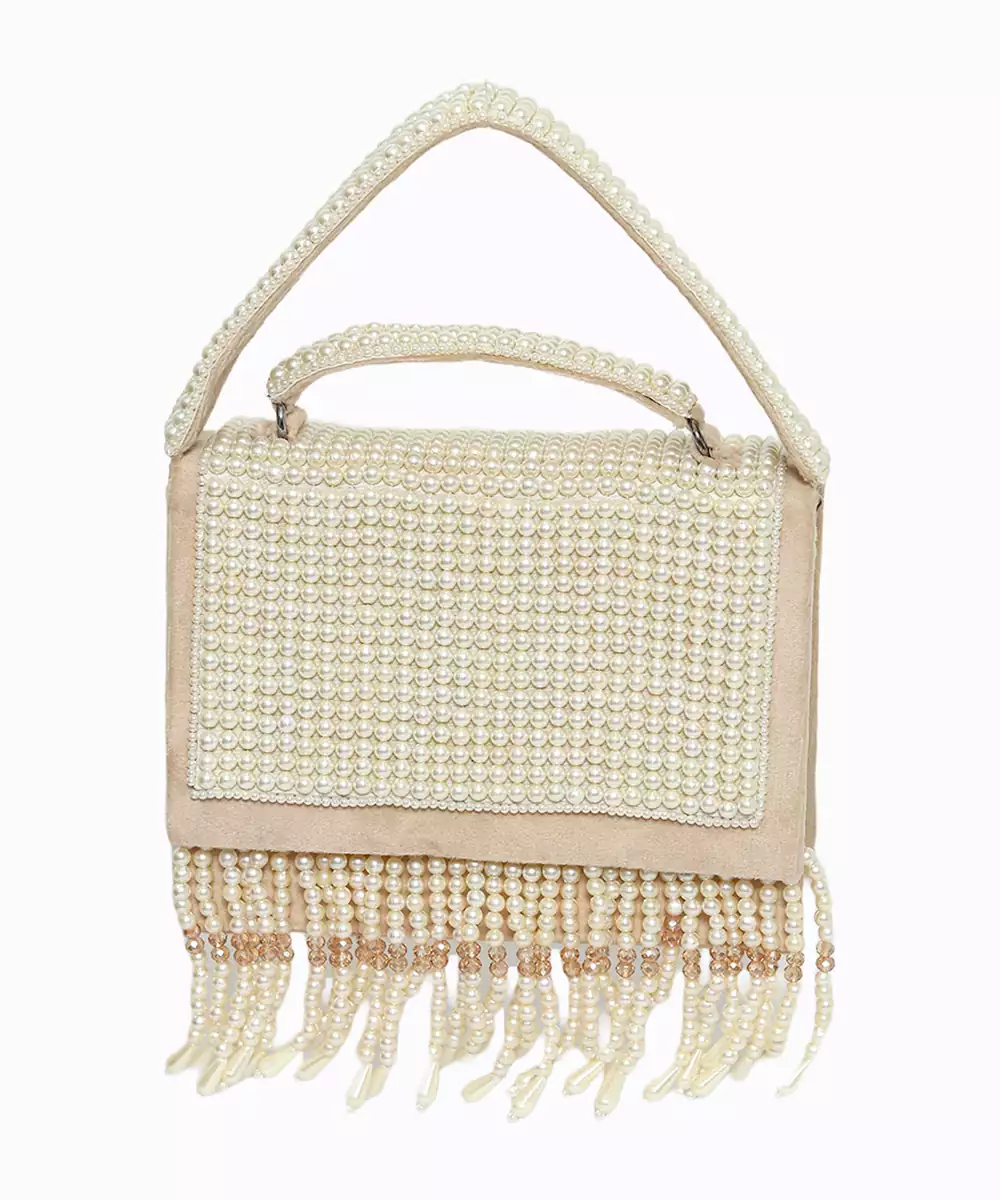 Embroidered With Delicate Pearls In Beige And White For A Refined, Timeless Aesthetic. Sculpted Box Silhouette Lends Structure And Sophistication To Ethnic Or Contemporary Looks. Features One Main Compartment Secured With A Button Closure For Secure Access. Comes With A Shoulder Strap For Hands Free Comfort And Styling Ease. An Elegant Accessory Ideal For Bridal Edits, Festive Gatherings, Or...