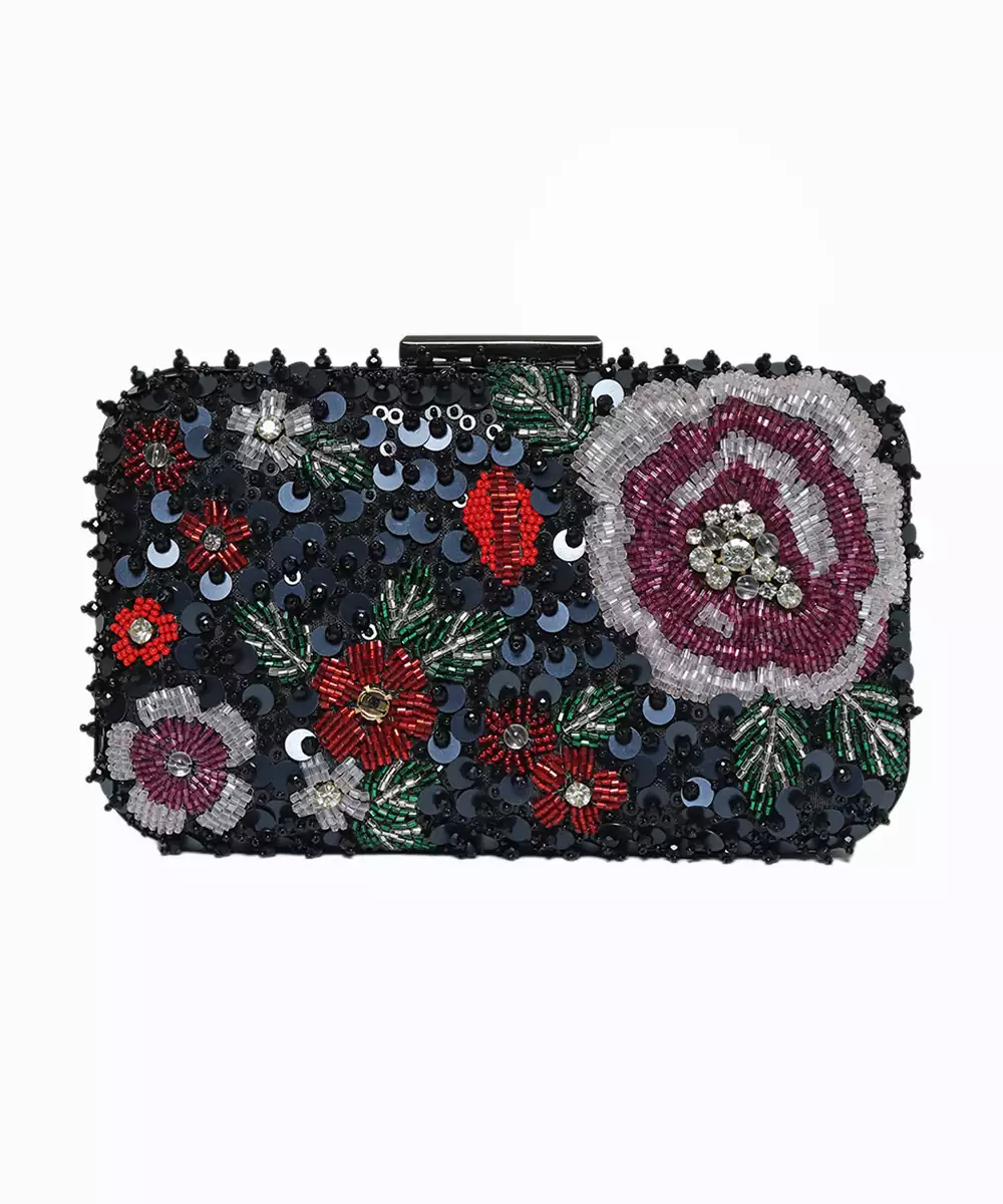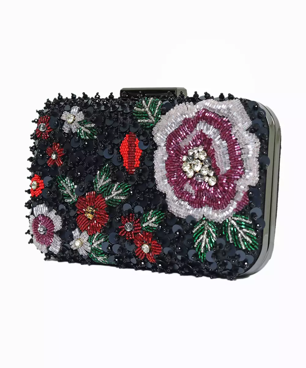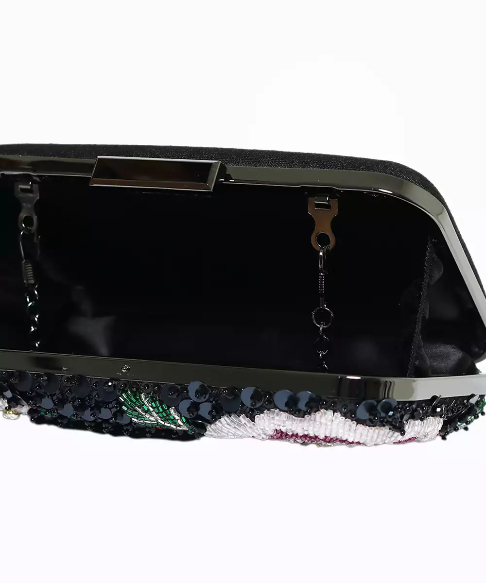 Embellished In Black And Green For A Dramatic, Festive Look. Sculpted Box Silhouette Offers Structured Elegance And Standout Presence. Features One Main Compartment Secured With A Twist Closure For Easy Access. Includes A Shoulder Strap For Versatile Styling And Hands Free Wear. A Vibrant Piece Perfect For Celebrations, Evening Outings, Or Ethnic Fusion Edits.
