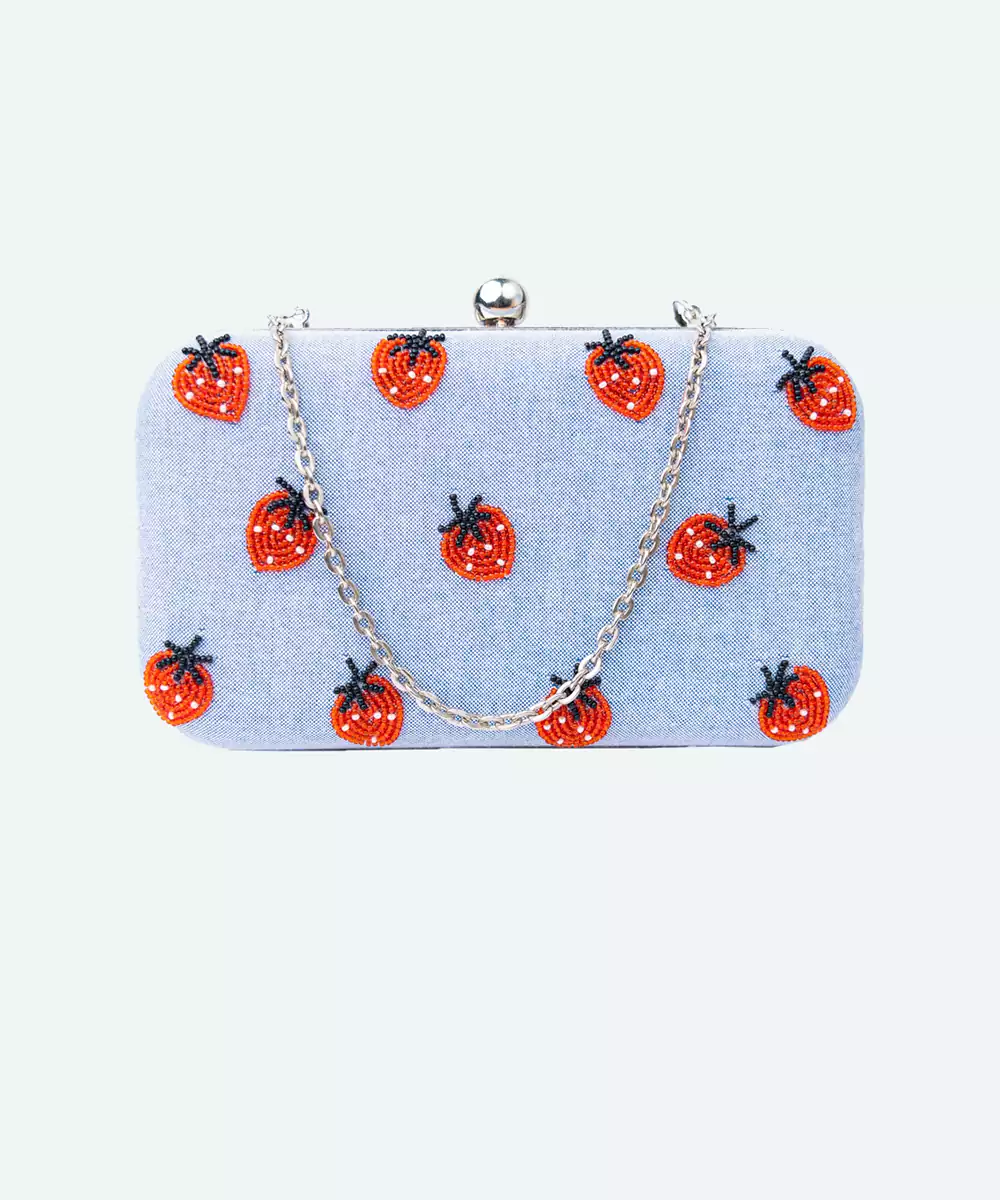 Hand Embroidered With Playful Strawberry Motifs On A Blue Base For A Vibrant, Cheerful Appeal. Reverse Side Features Same Shade Premium Fabric For A Cohesive And Polished Look. Includes A Detachable Sling Chain For Flexible Crossbody Or Shoulder Styling. Lined With Premium Suede For A Soft, Luxe Feel And Enhanced Durability. Roomy Enough To Fit Phones Of Almost All Sizes, Blending Utility With...