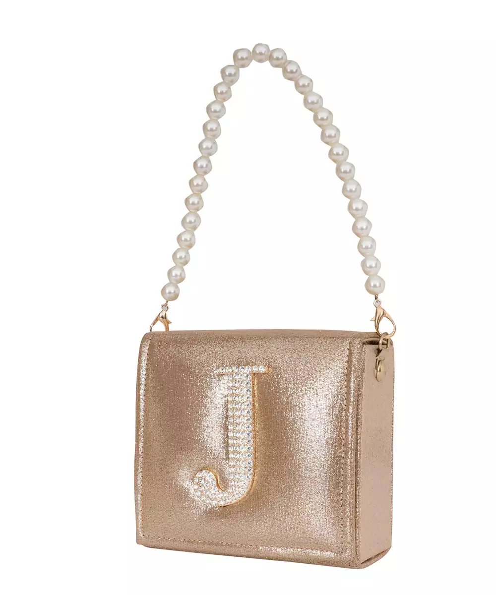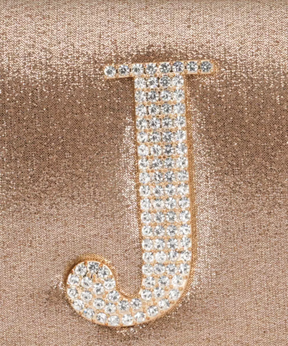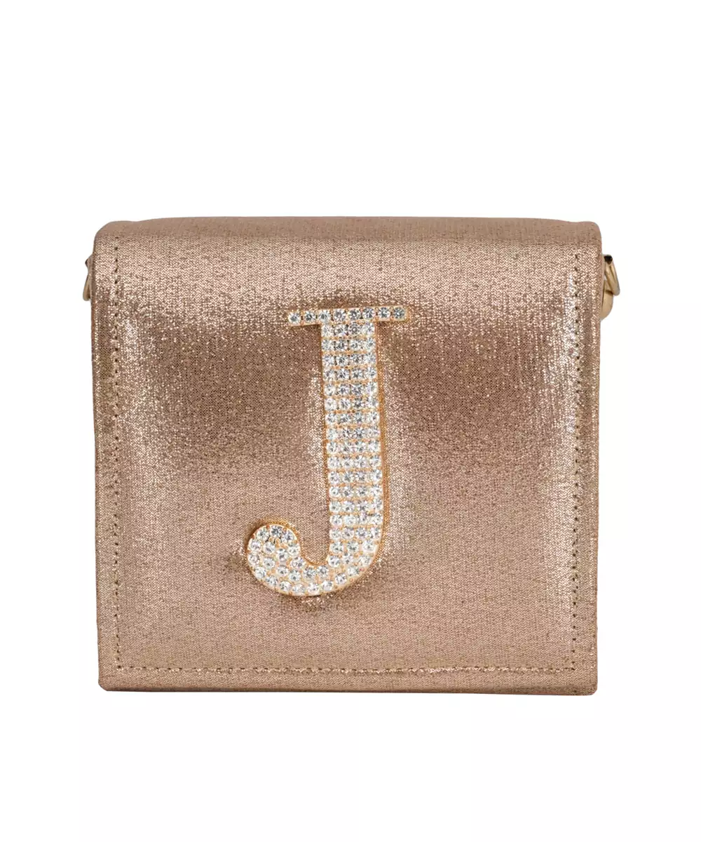 Structured Box Clutch In Gleaming Gold Tone With Diamond Style Embellishments. Features A Bold ‘J’ Alphabet Accent For Personalized Charm. Includes A Detachable Shoulder Strap For Hands Free Styling Flexibility. Button Closure Secures Essentials Within The Roomy Main Compartment. Luxe And Expressive—Perfect For Gifting, Bridal Wear, Or Festive Edits With A Touch Of Identity.
