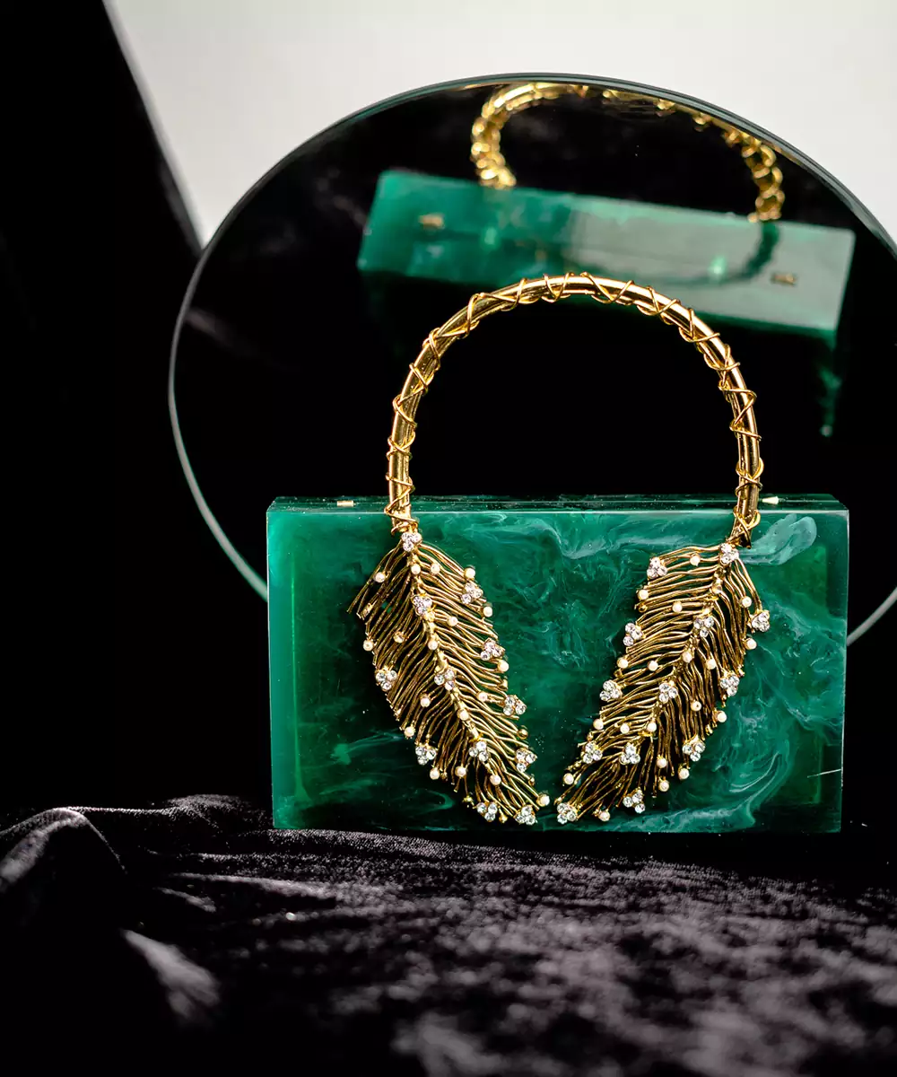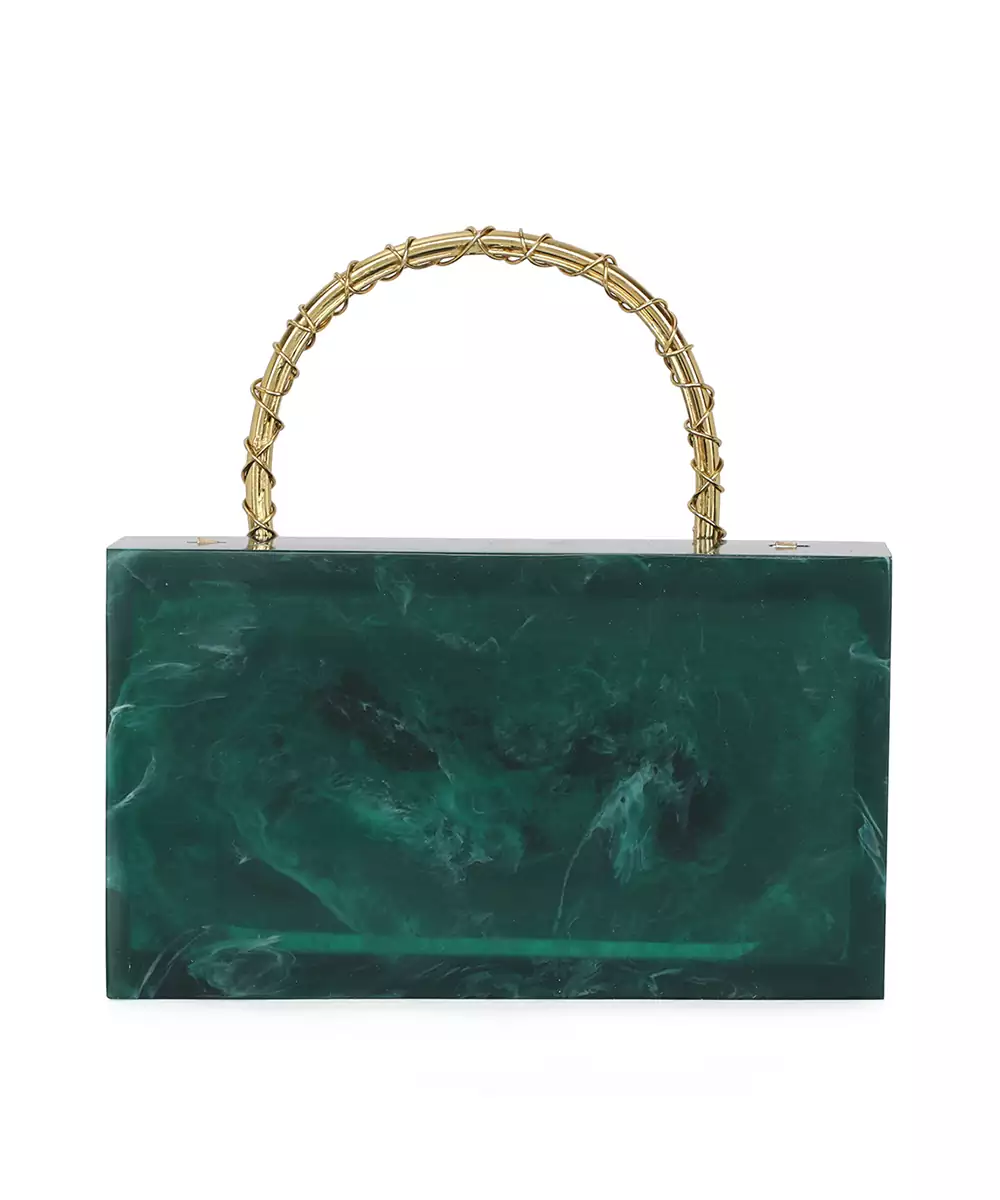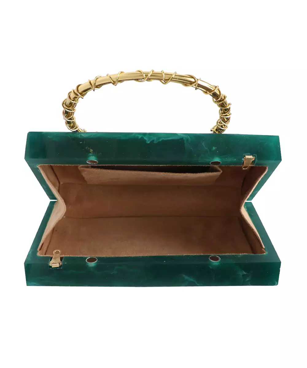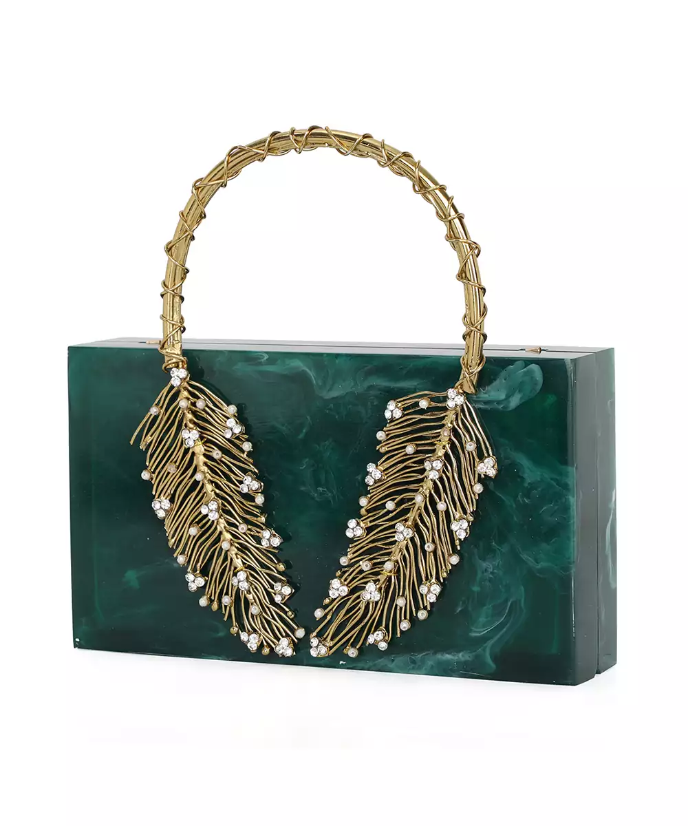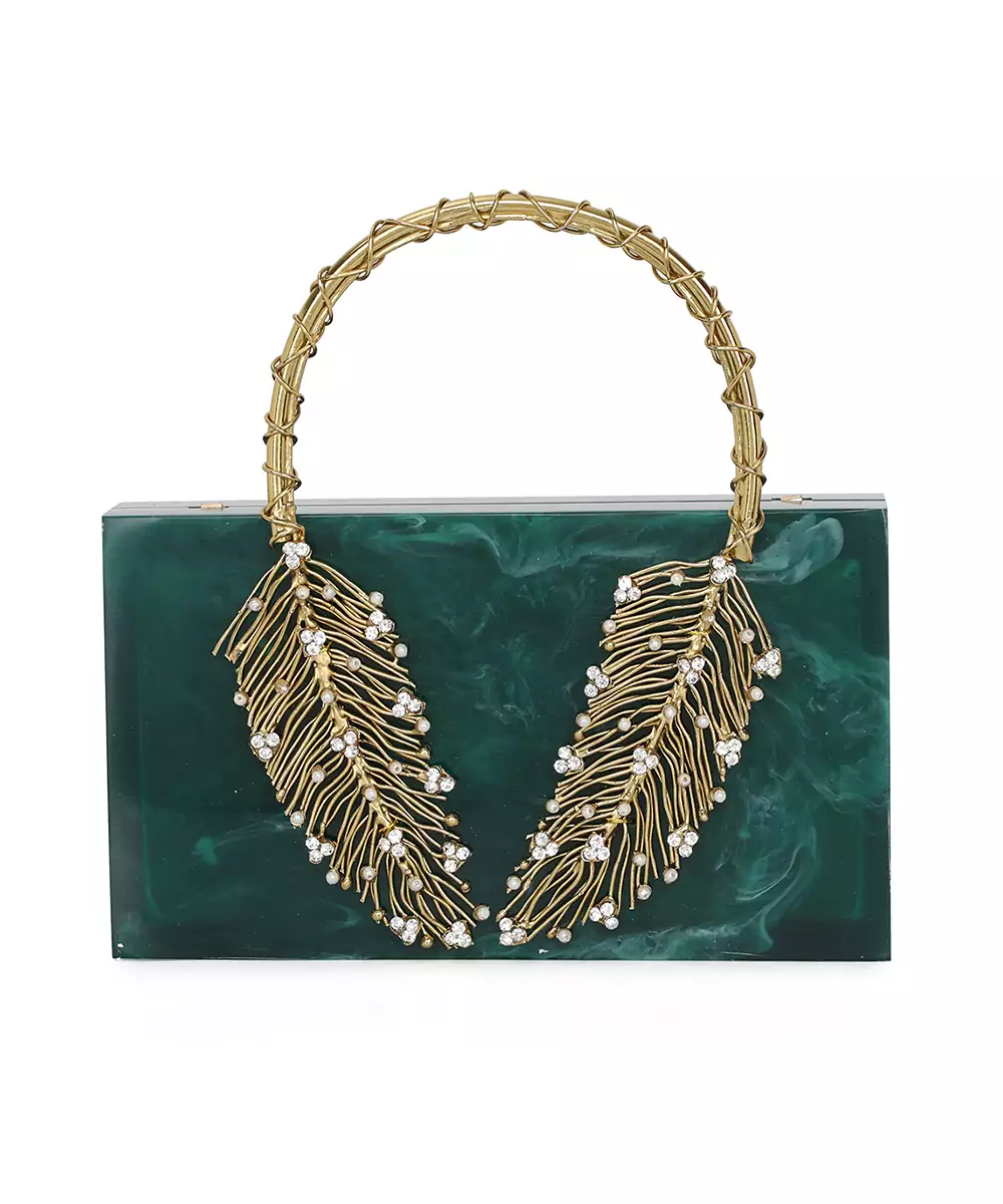 Regal Dark Green Clutch Enriched With Pink And Gold Toned Diamond Style Embellishments. Structured Box Silhouette Adds Glam And Sophistication To Festive Edits. Comes With A Shoulder Strap For Easy, Hands Free Carrying. Style Note: Pair With Brocade Sets Or Embroidered Sarees To Highlight Its Bold Elegance. One Spacious Main Compartment Secured With A Sturdy Click Closure.