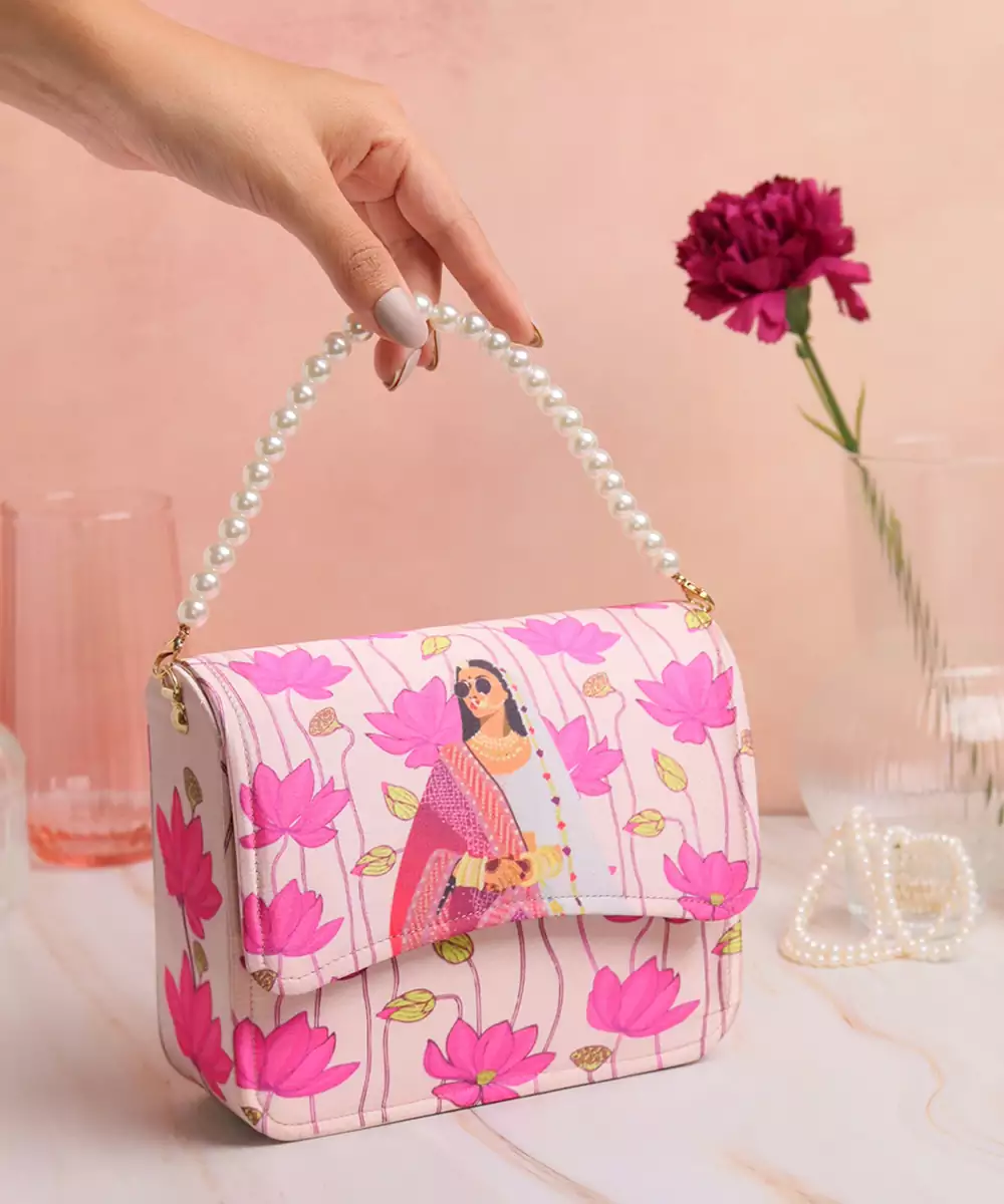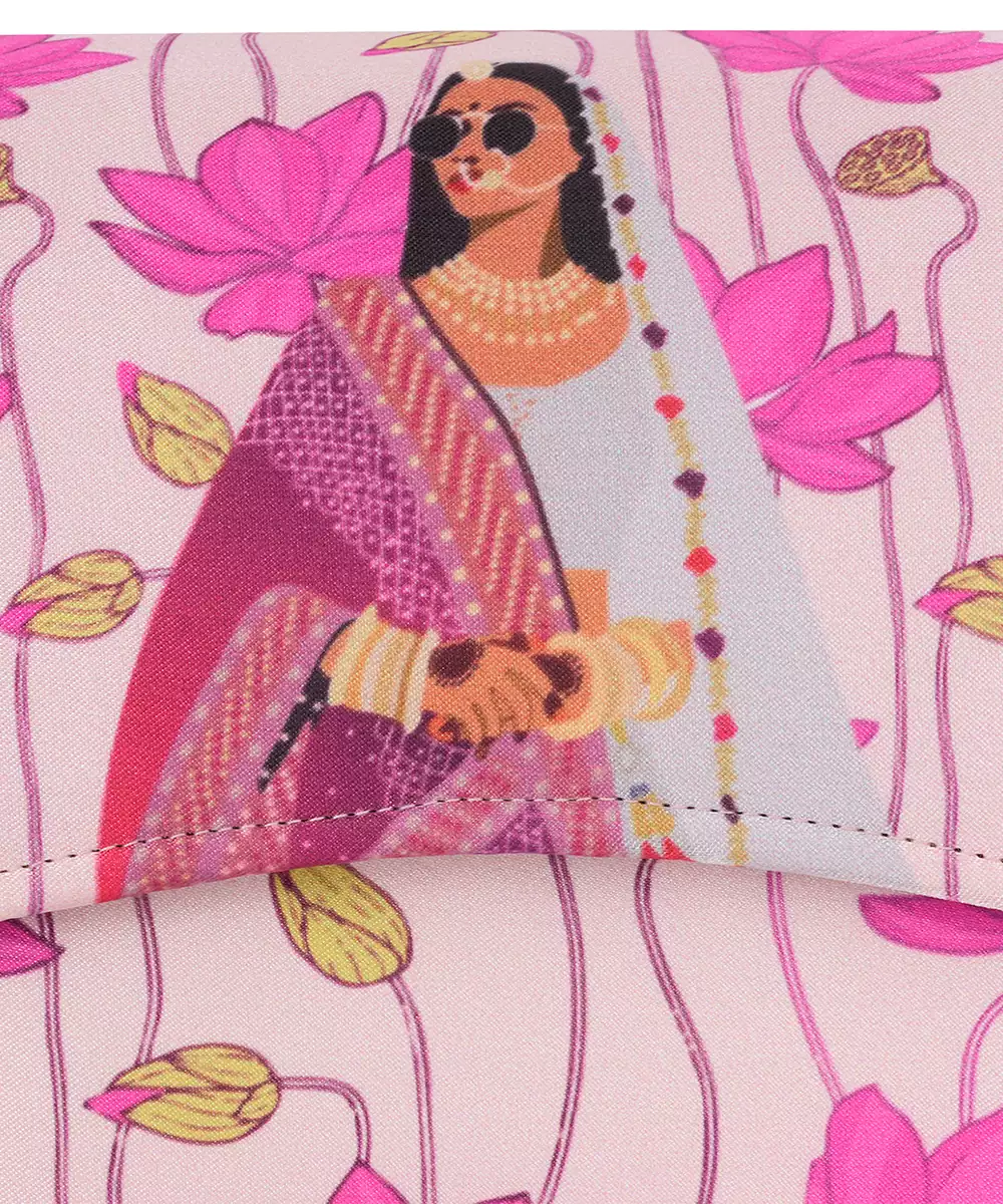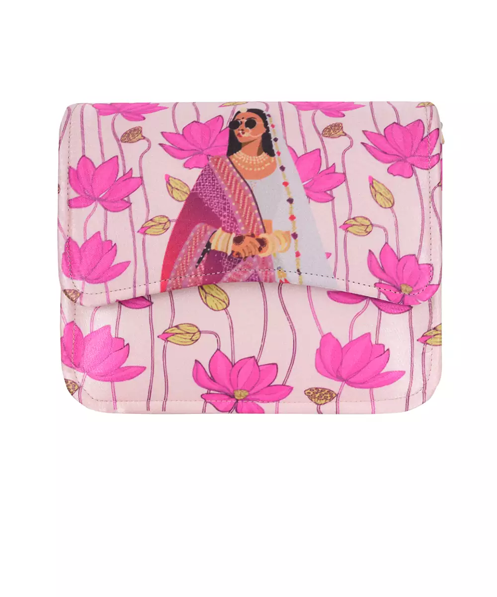 Foldover Clutch In Bright Pink With Traditional Ethnic Motif Prints. Features A Wrist Loop For Easy And Elegant Carry. Button Closure Secures Your Essentials In The Spacious Main Compartment. Lightweight And Statement Worthy—Ideal For Festive Functions Or Haldi Ceremonies. Style Note: Team With Embroidered Kurtis, Printed Sarees, Or Contrast Lehengas To Enhance Its Desi Flair.