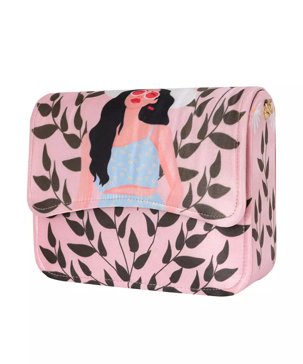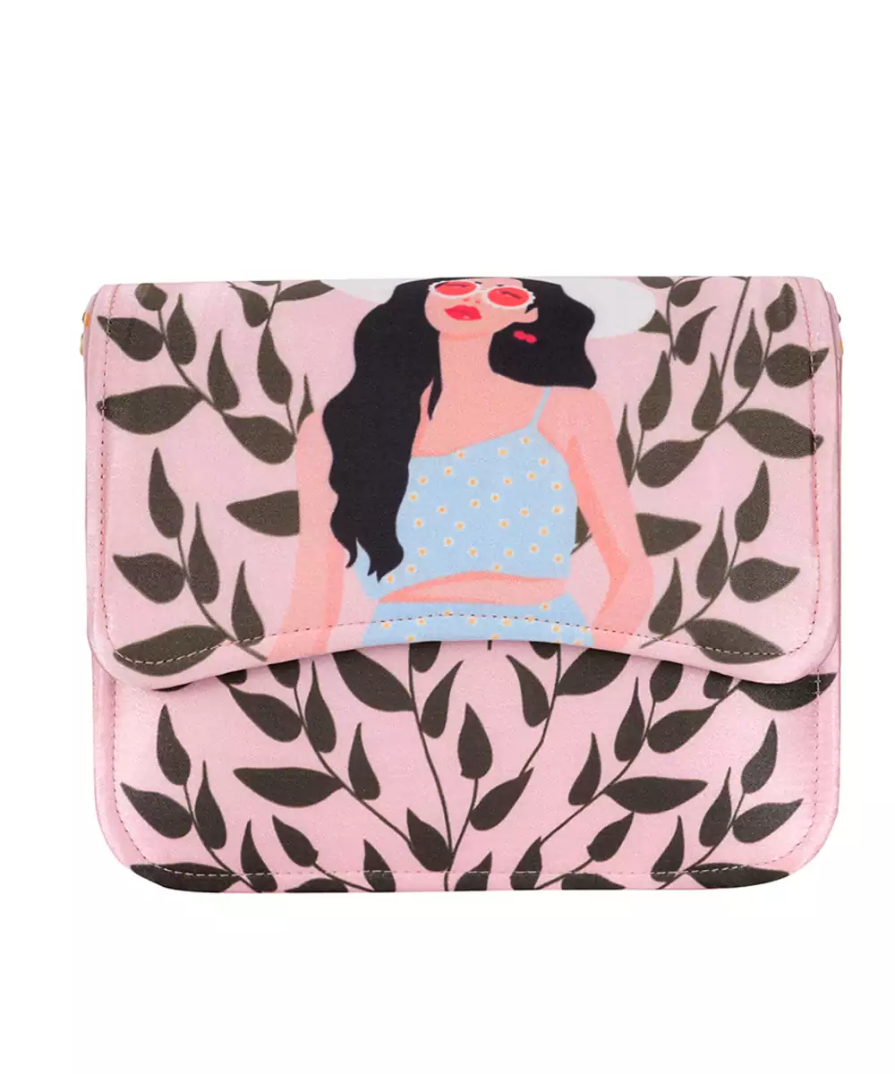 Foldover Clutch Featuring Eye Catching Graphic Prints In Pink And Green Tones. Comes With A Wrist Loop For Easy And Graceful Handling. Button Closure Secures Essentials Inside The Spacious Main Compartment. Bold And Playful—Ideal For Festive Daytime Looks Or Casual Ethnic Edits. Style Note: Pair With Solid Colored Kurtas Or Printed Co Ord Sets To Let The Clutch Add A Pop Of Vibrance.