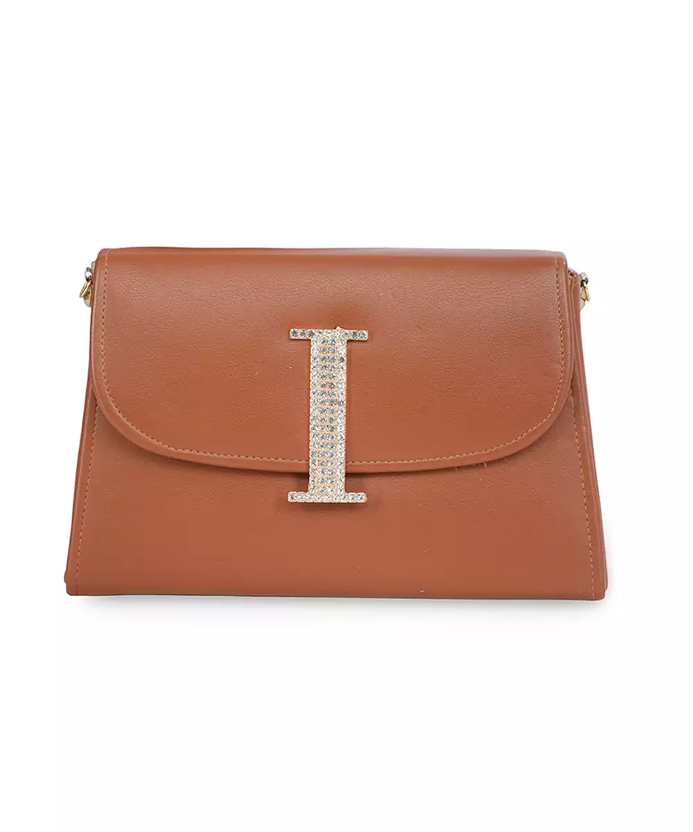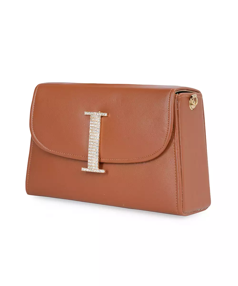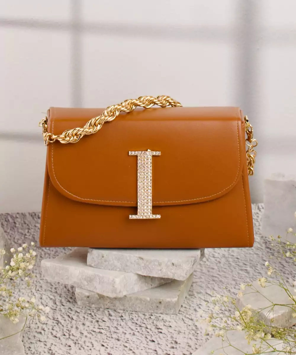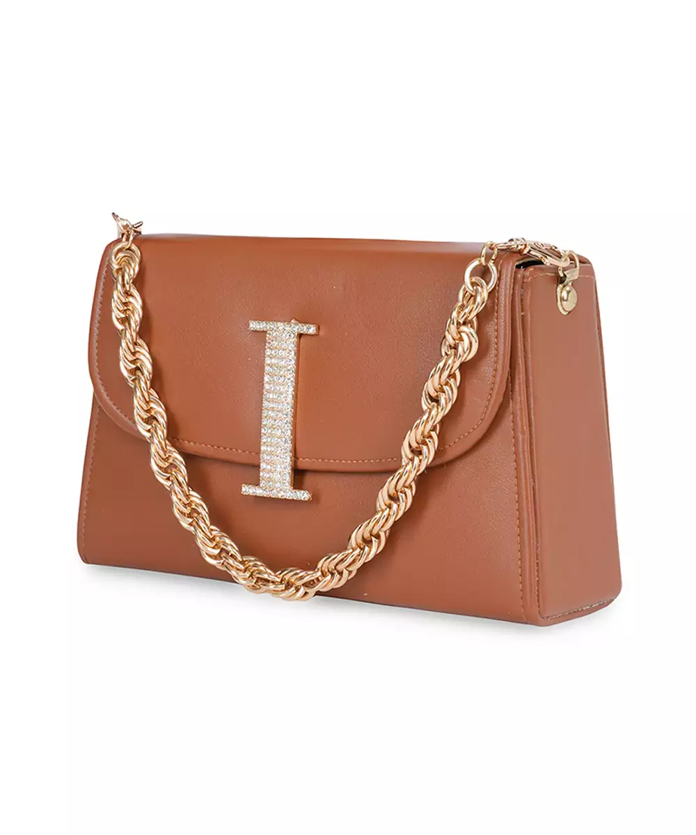 Embellished In Rich Tan And Gold Tones For A Luxe, Occasion Ready Aesthetic. Highlighted With A Bold Alphabet ‘I’ Motif On The Front For A Unique Personalized Touch. Structured Box Silhouette Features A Secure Button Closure For Convenience And Style. Comes With A Shoulder Strap For Hands Free Ease And Versatile Wear. A Refined Accessory Ideal For Festive Events, Personalized Gifting, Or...