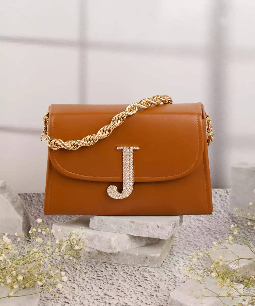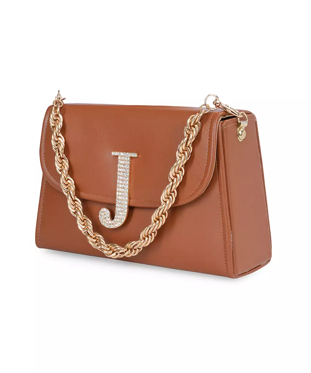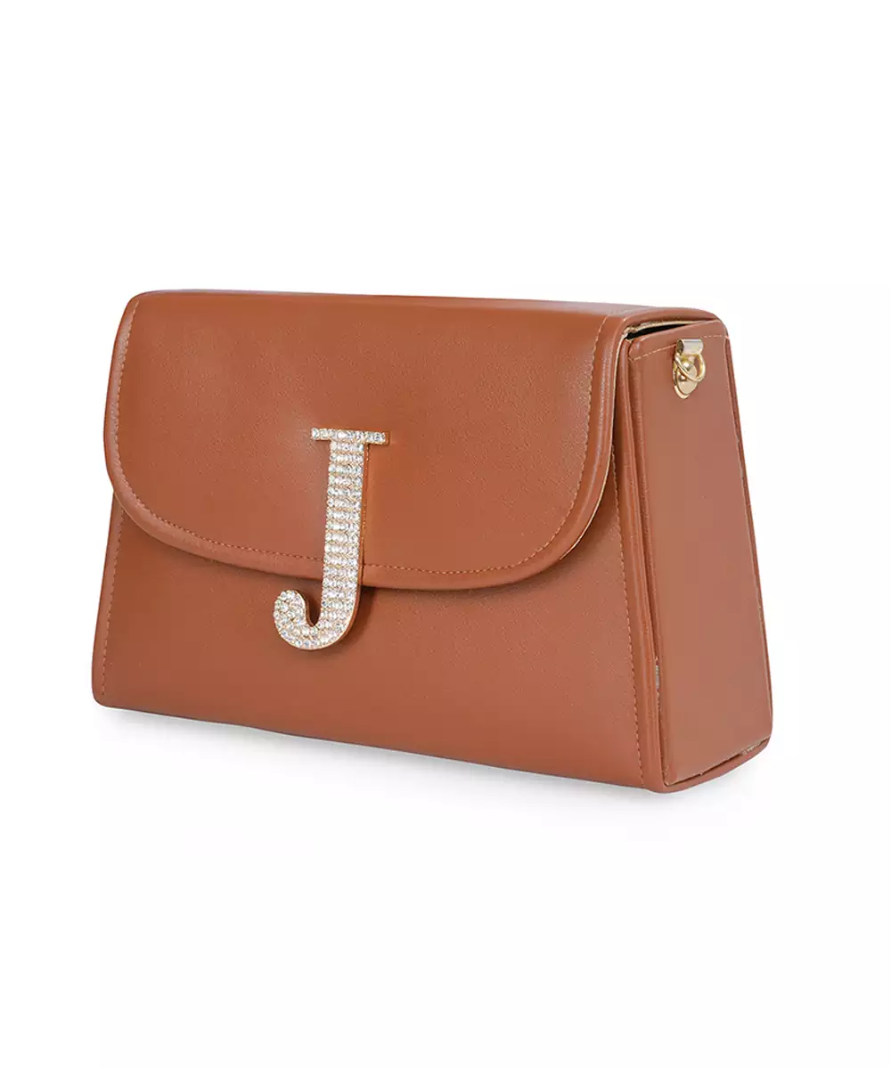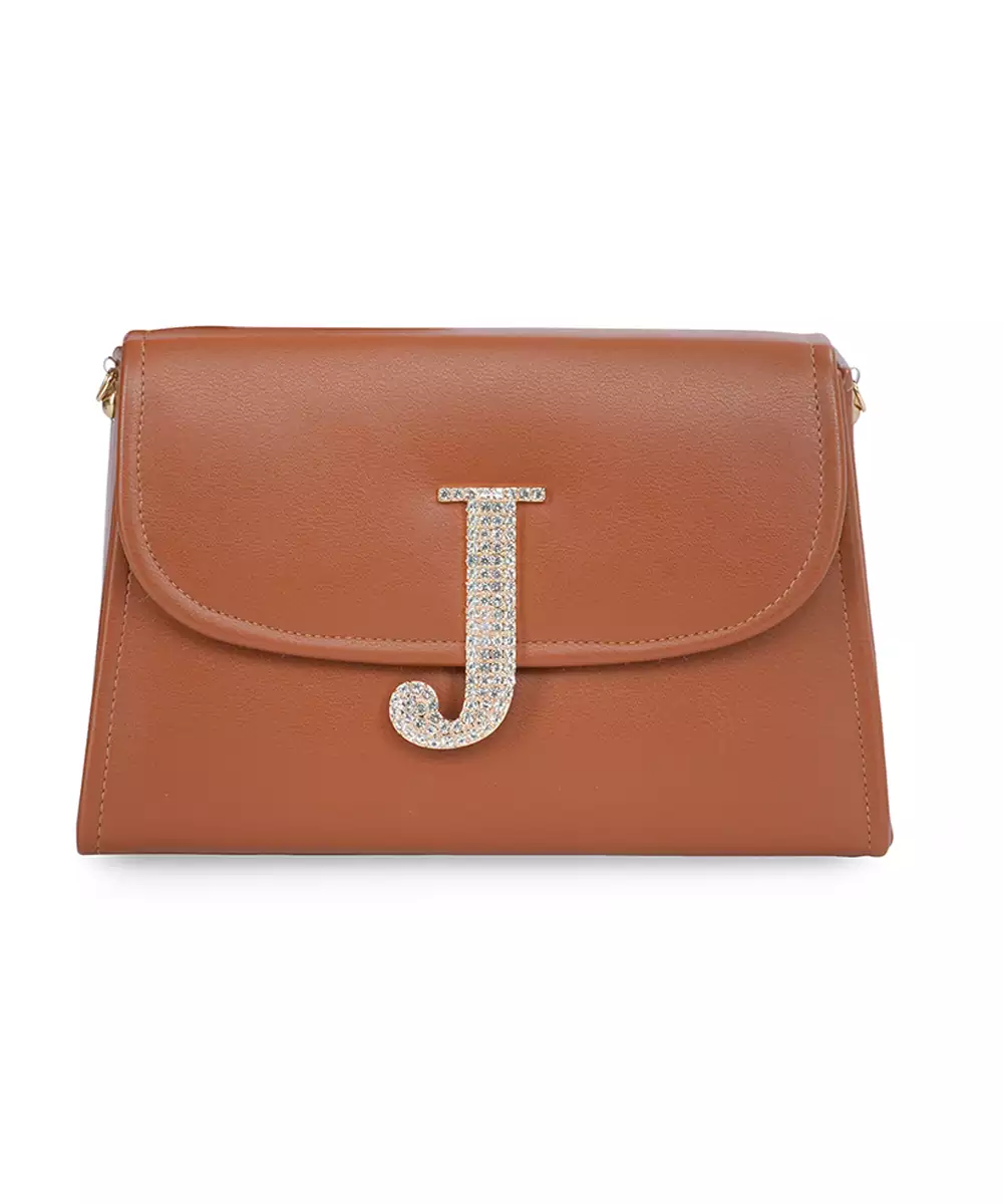 Embellished In Rich Tan And Gold Tones For A Luxe, Occasion Ready Aesthetic. Highlighted With A Bold Alphabet ‘J’ Motif On The Front For A Unique Personalized Touch. Structured Box Silhouette Features A Secure Button Closure For Convenience And Style. Comes With A Shoulder Strap For Hands Free Ease And Versatile Wear. A Refined Accessory Ideal For Festive Events, Personalized Gifting, Or...