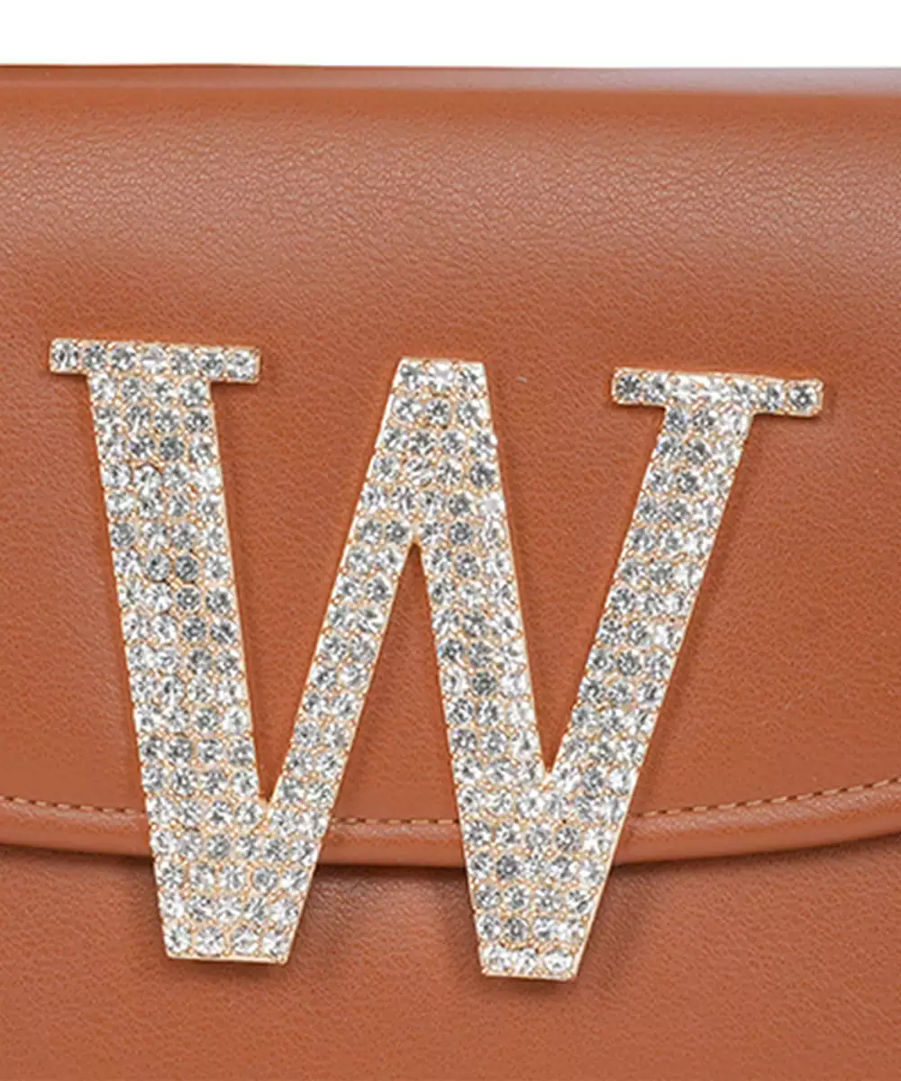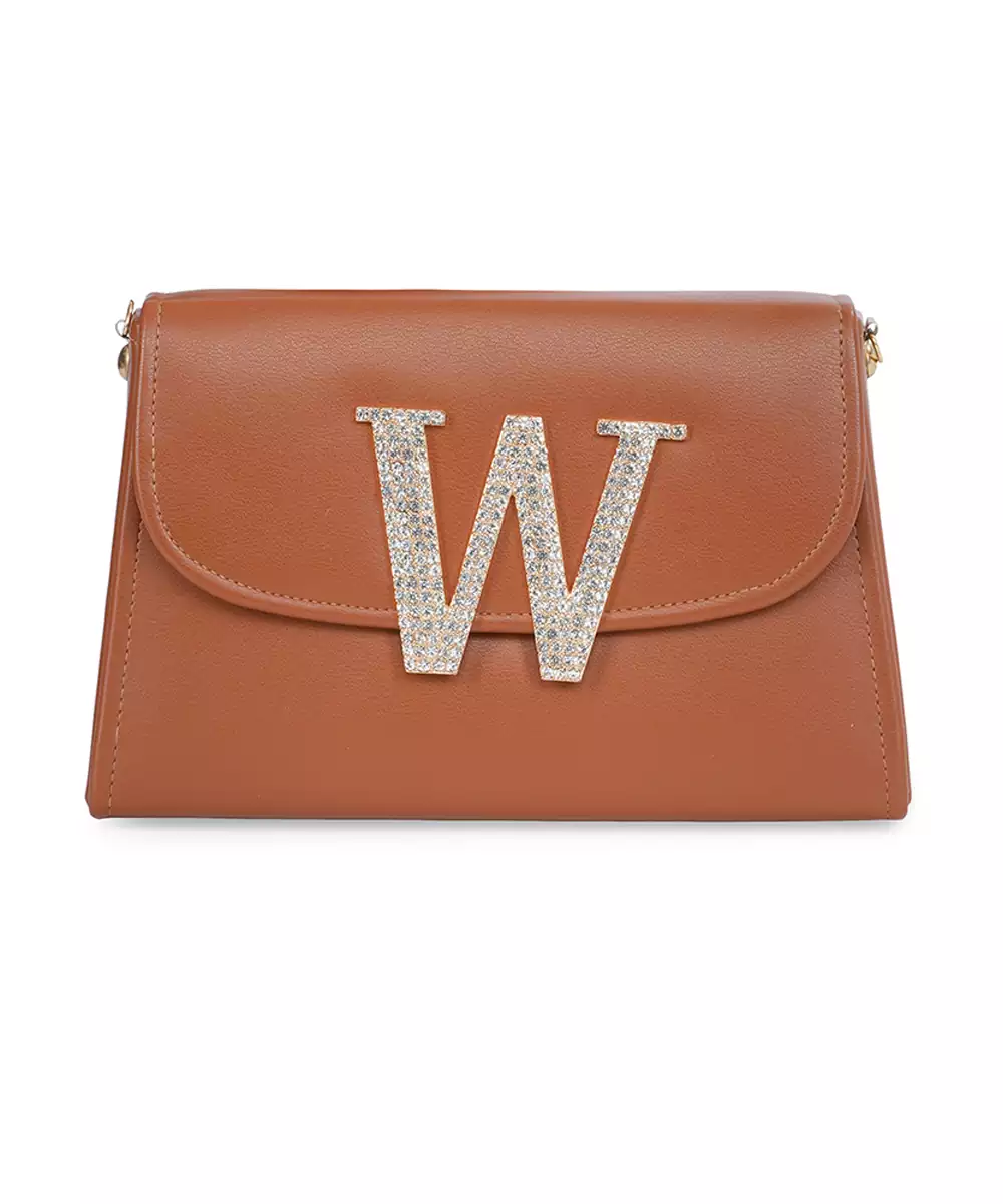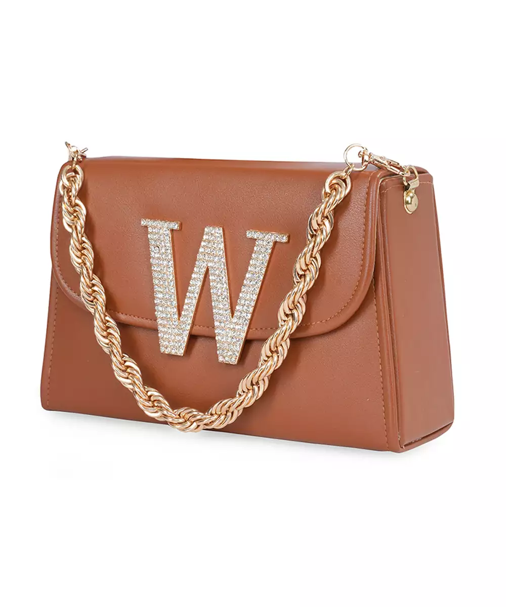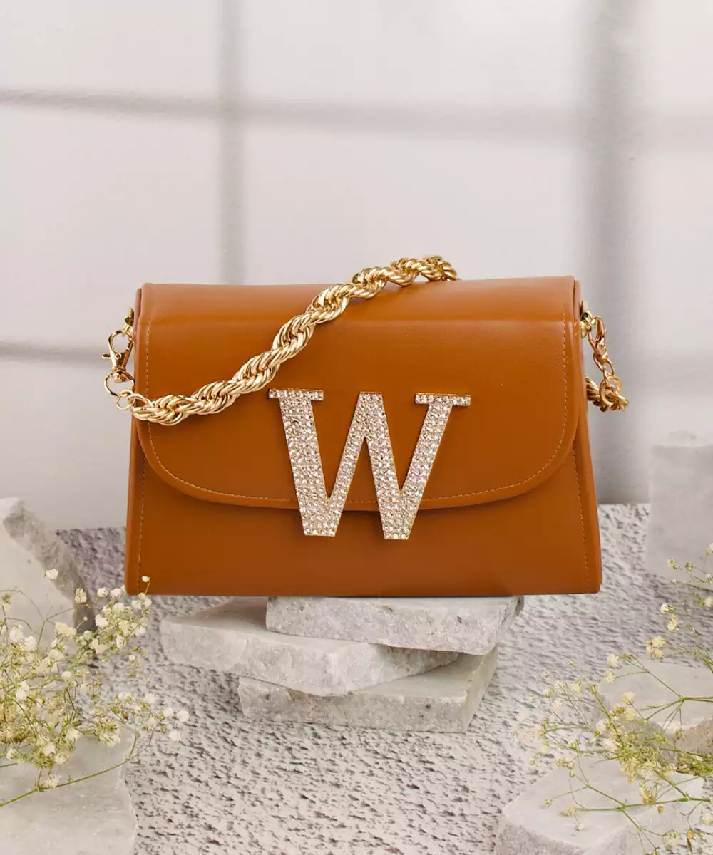 Embellished In Rich Tan And Gold Tones For A Luxe, Occasion Ready Aesthetic. Highlighted With A Bold Alphabet ‘W’ Motif On The Front For A Unique Personalized Touch. Structured Box Silhouette Features A Secure Button Closure For Convenience And Style. Comes With A Shoulder Strap For Hands Free Ease And Versatile Wear. A Refined Accessory Ideal For Festive Events, Personalized Gifting, Or...