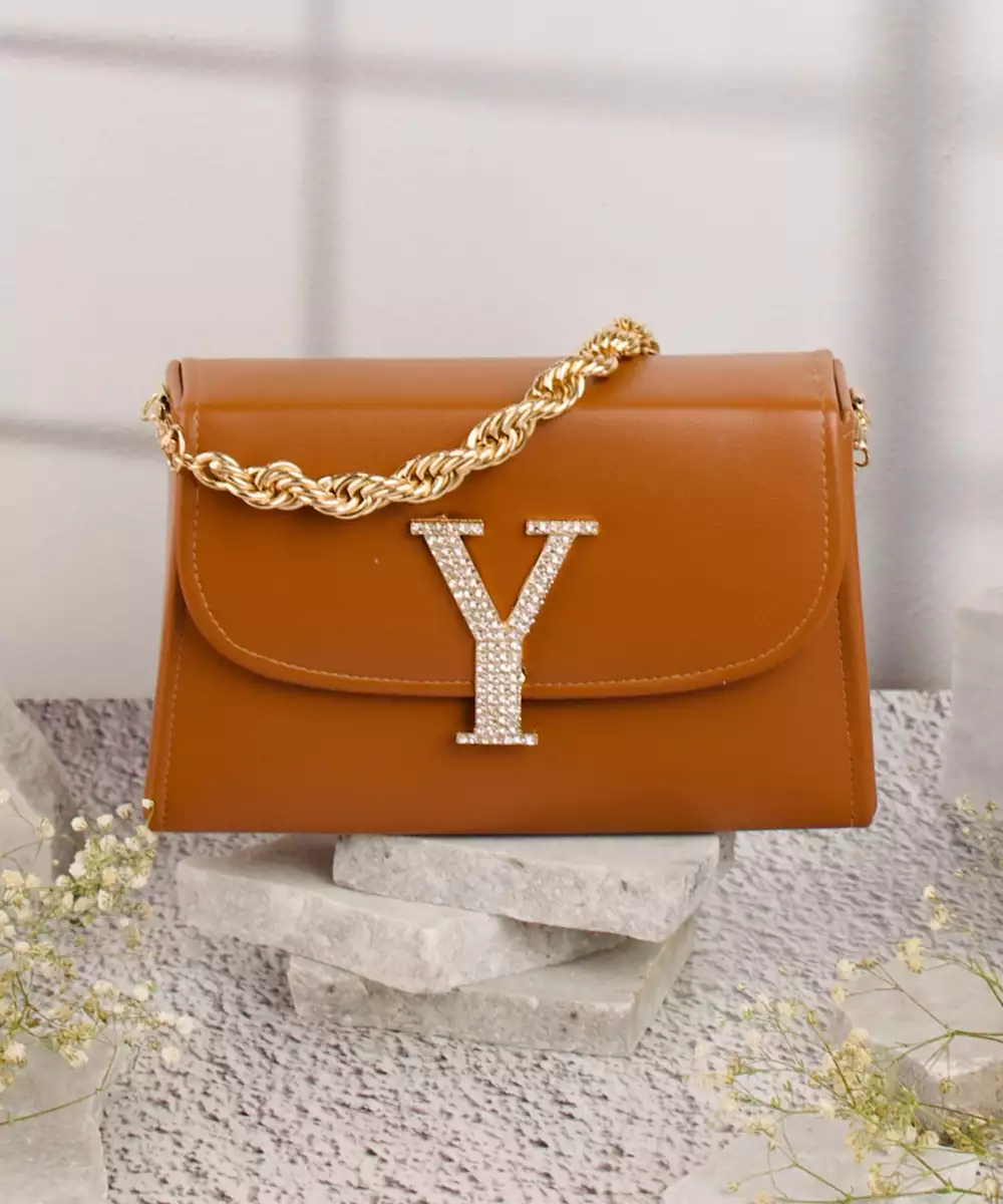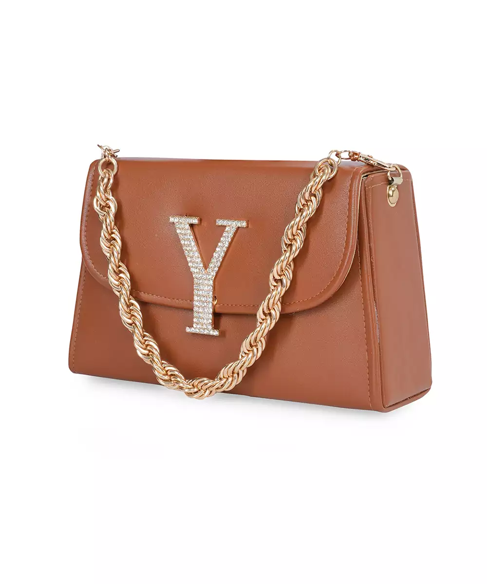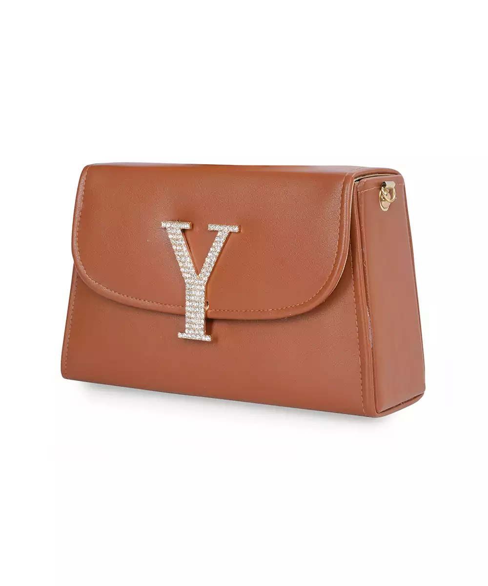 Embellished In Rich Tan And Gold Tones For A Luxe, Occasion Ready Aesthetic. Highlighted With A Bold Alphabet ‘Y’ Motif On The Front For A Unique Personalized Touch. Structured Box Silhouette Features A Secure Button Closure For Convenience And Style. Comes With A Shoulder Strap For Hands Free Ease And Versatile Wear. A Refined Accessory Ideal For Festive Events, Personalized Gifting, Or...