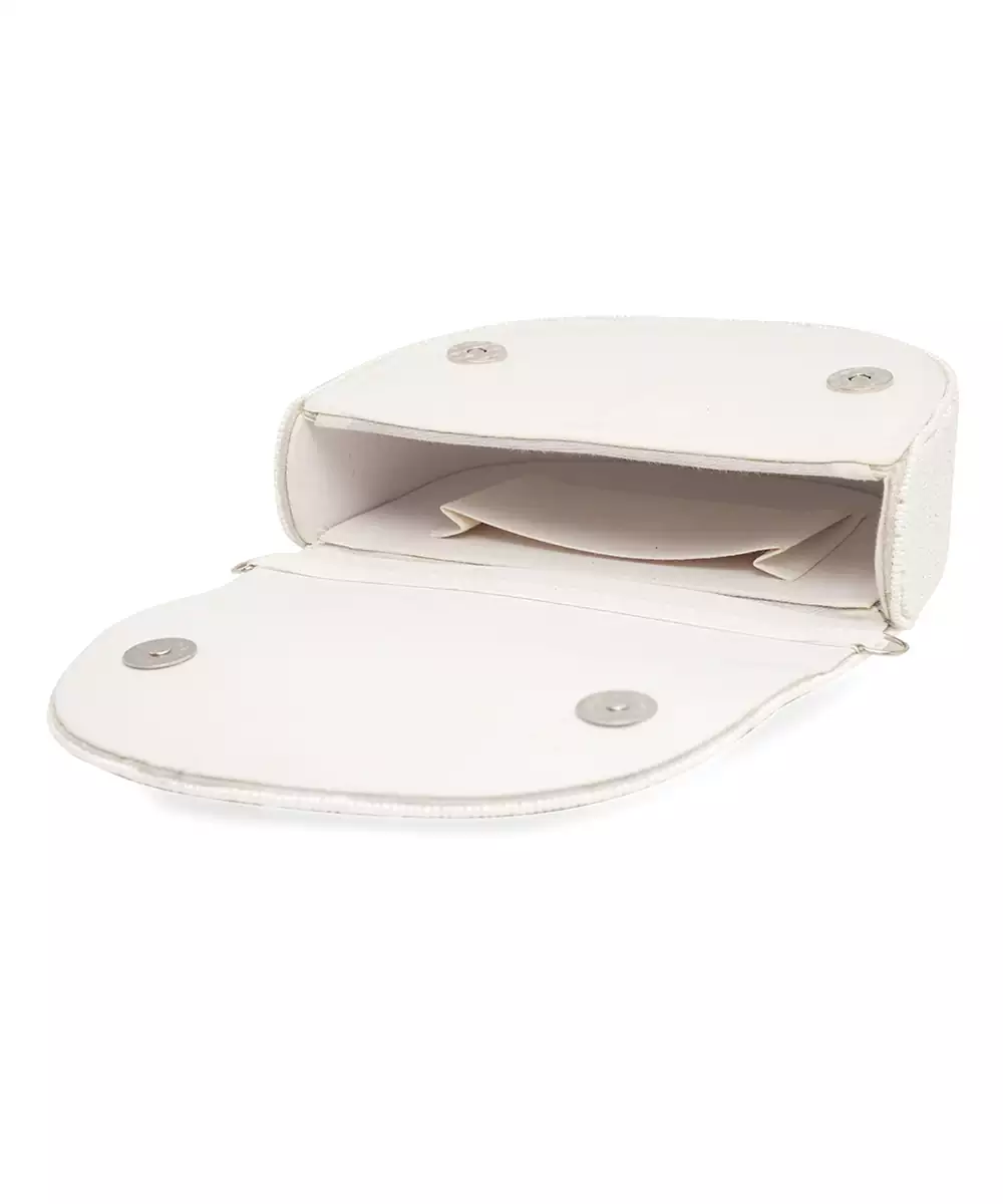 Elegant White Silk Base With Intricate Bead Embroidery And Tonal Embellishments. Foldover Silhouette With Button Closure And Wrist Loop For Graceful Carrying. One Main Compartment To Hold Essentials—Lipstick, Cards, Keys. Ideal For Bridal Trousseau, Festive Gifting, Or Evening Wear. Style Note: Pair With Ivory Sarees, Pastel Lehengas, Or Silver Gowns For A Dreamy, Ethereal Finish.