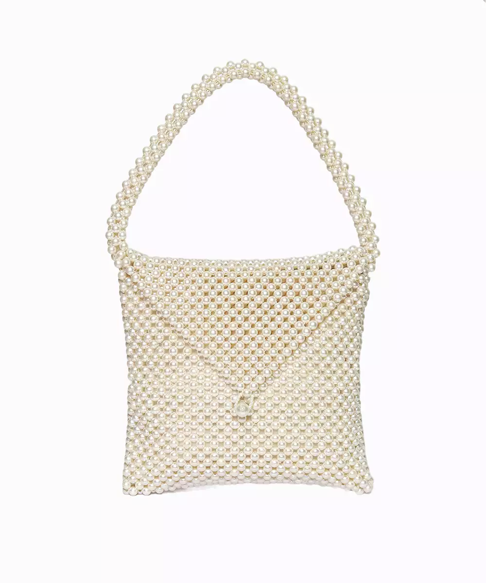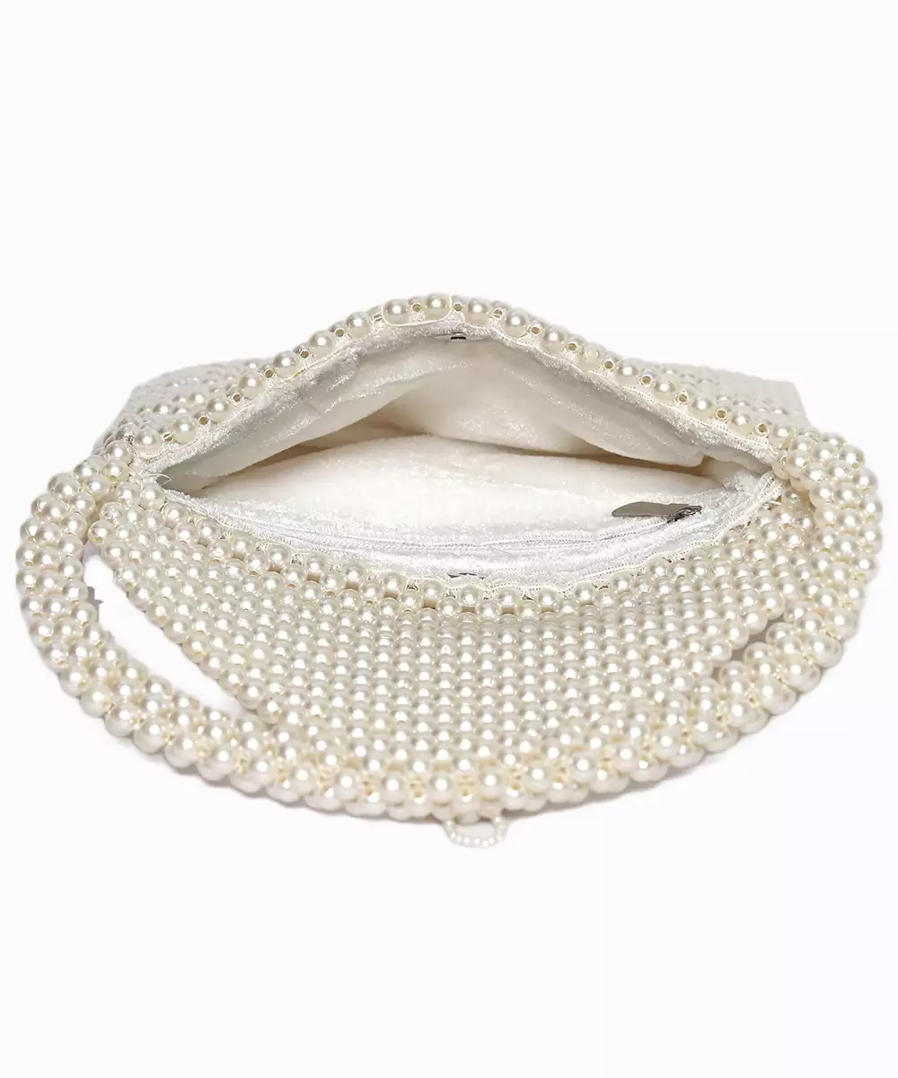 Showcases Delicate Pearl Embroidery On A Pristine White Base For Refined Charm. Designed As A Compact Clutch Purse That Blends Tradition With Sophistication. Equipped With A Wrist Loop For Effortless Portability During Special Occasions. Includes One Main Compartment Secured With A Button Closure. Style Note: Pair It With A Pastel Saree Or An Embroidered Kurti For Understated Glamour.